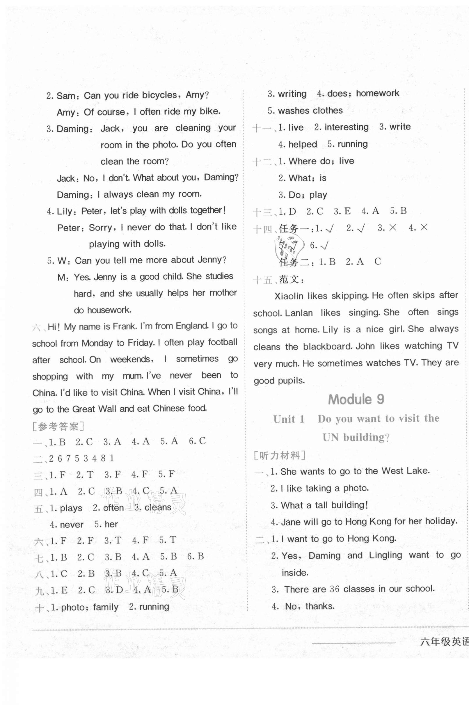 注:目前有些书本章节名称可能整理的还不是很完善,但都是按照顺序排列的,请同学们按照顺序仔细查找。练习册 2021年黄冈小状元作业本六年级英语上册外研版 答案主要是用来给同学们做完题方便对答案用的,请勿直接抄袭。