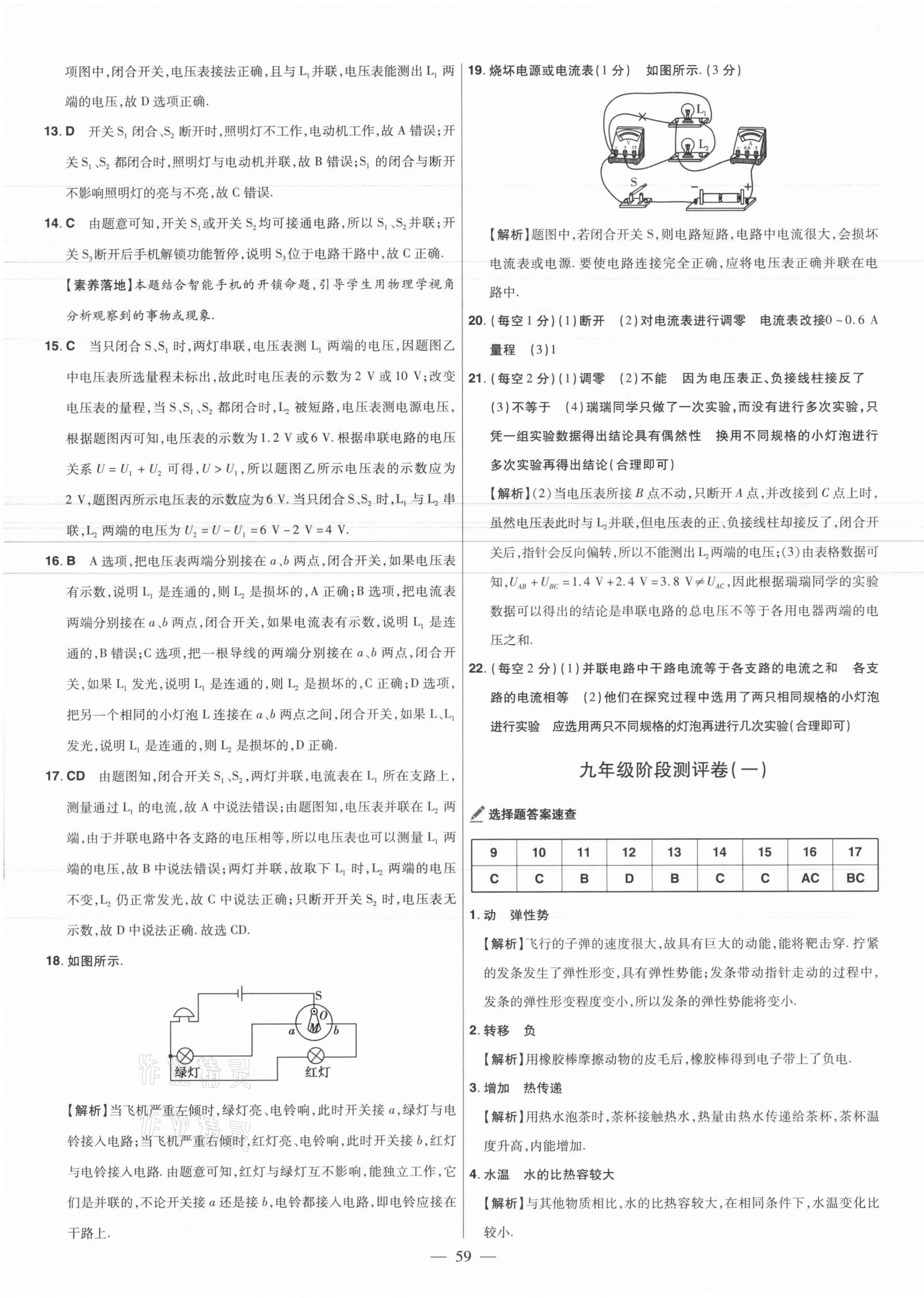 2021年金考卷活页题选九年级物理全一册沪粤版