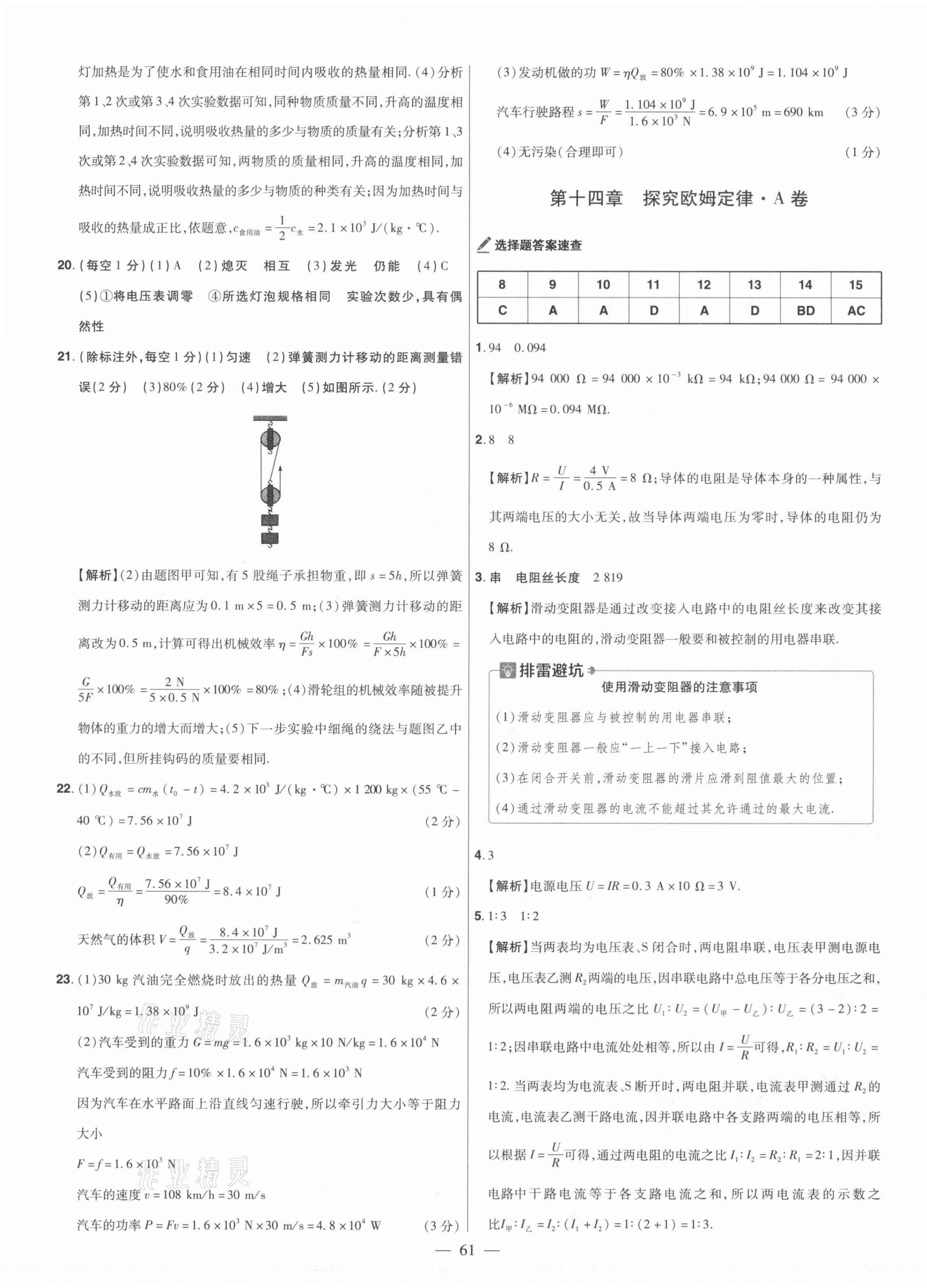 2021年金考卷活页题选九年级物理全一册沪粤版