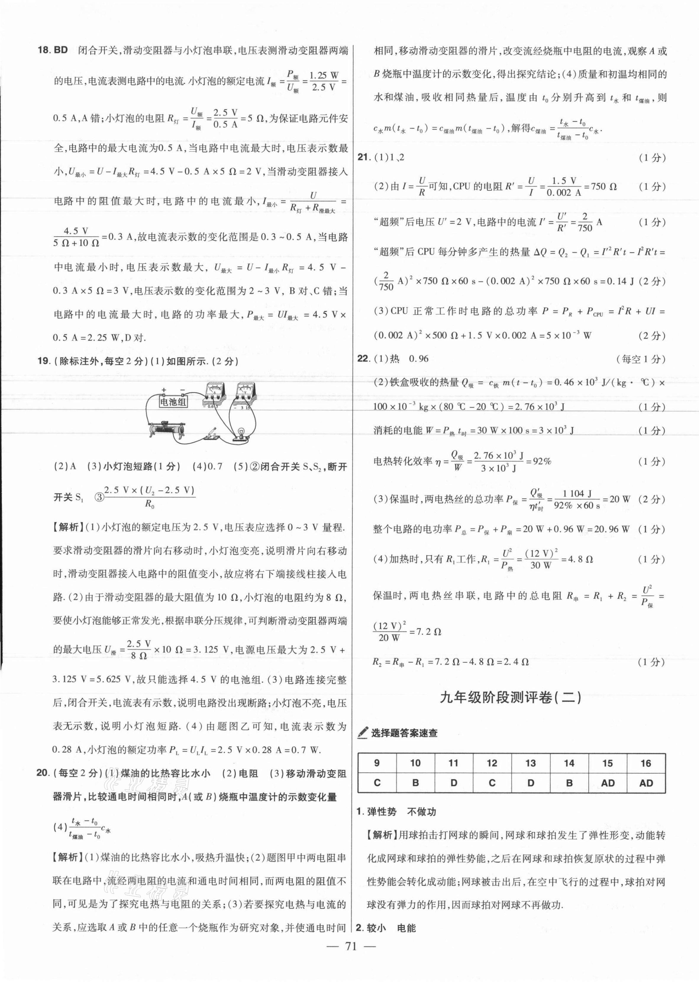 2021年金考卷活页题选九年级物理全一册沪粤版