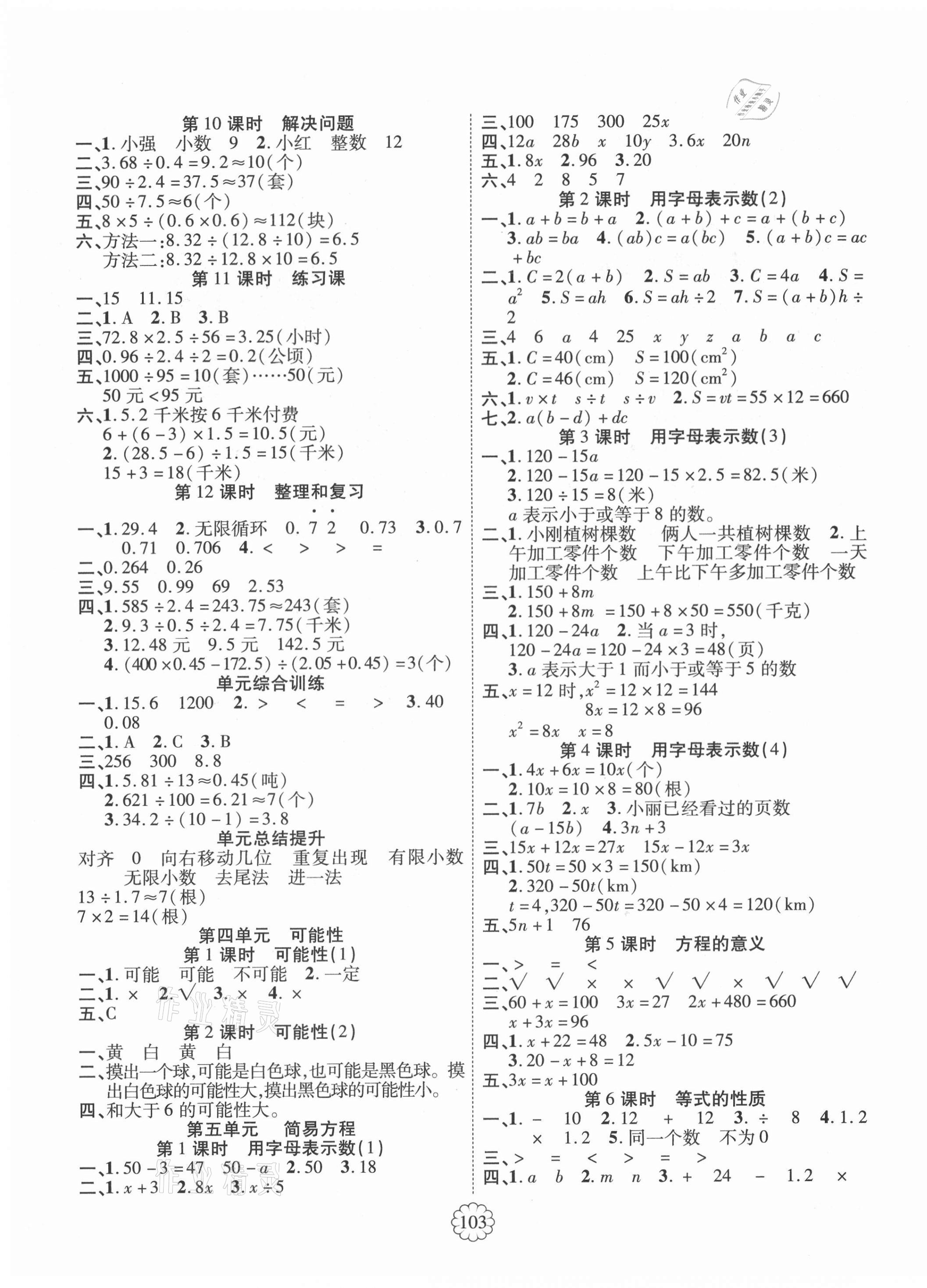 注:目前有些书本章节名称可能整理的还不是很完善,但都是按照顺序排列的,请同学们按照顺序仔细查找。练习册 2021年畅优新课堂五年级数学上册人教版 答案主要是用来给同学们做完题方便对答案用的,请勿直接抄袭。