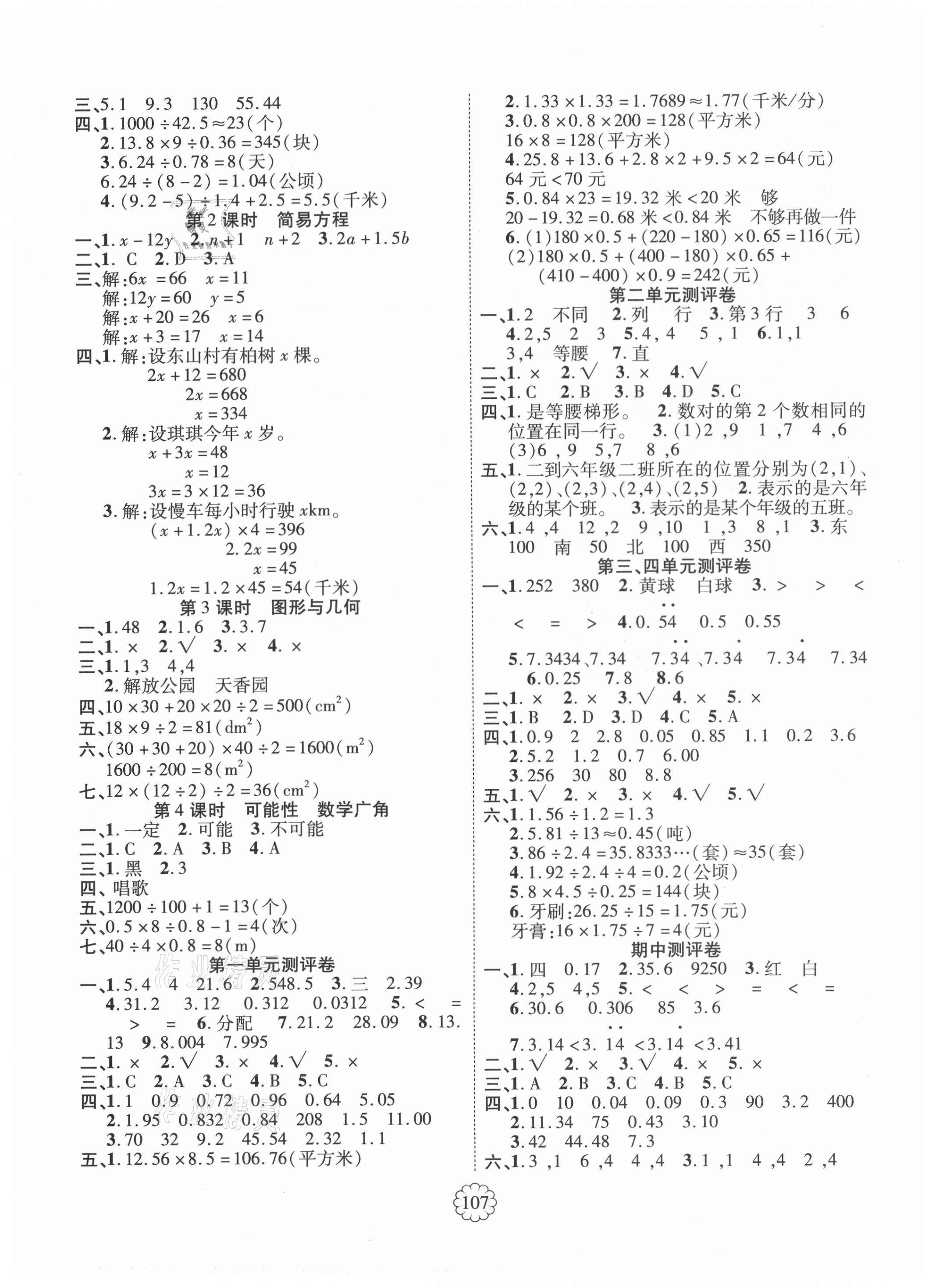 注:目前有些书本章节名称可能整理的还不是很完善,但都是按照顺序排列的,请同学们按照顺序仔细查找。练习册 2021年畅优新课堂五年级数学上册人教版 答案主要是用来给同学们做完题方便对答案用的,请勿直接抄袭。