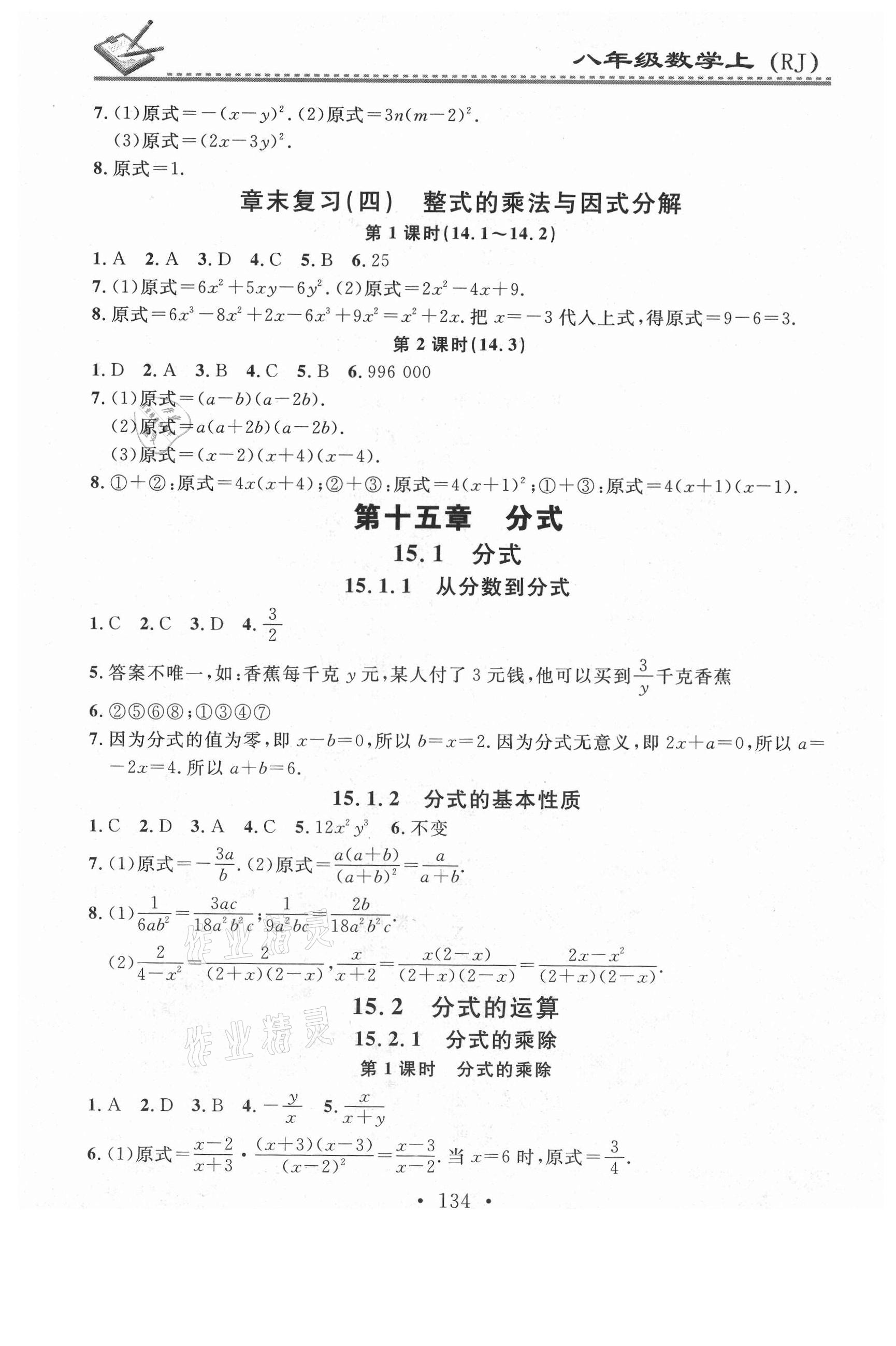 注:目前有些书本章节名称可能整理的还不是很完善,但都是按照顺序排列的,请同学们按照顺序仔细查找。练习册 2021年名校课堂小练习八年级数学上册人教版 答案主要是用来给同学们做完题方便对答案用的,请勿直接抄袭。