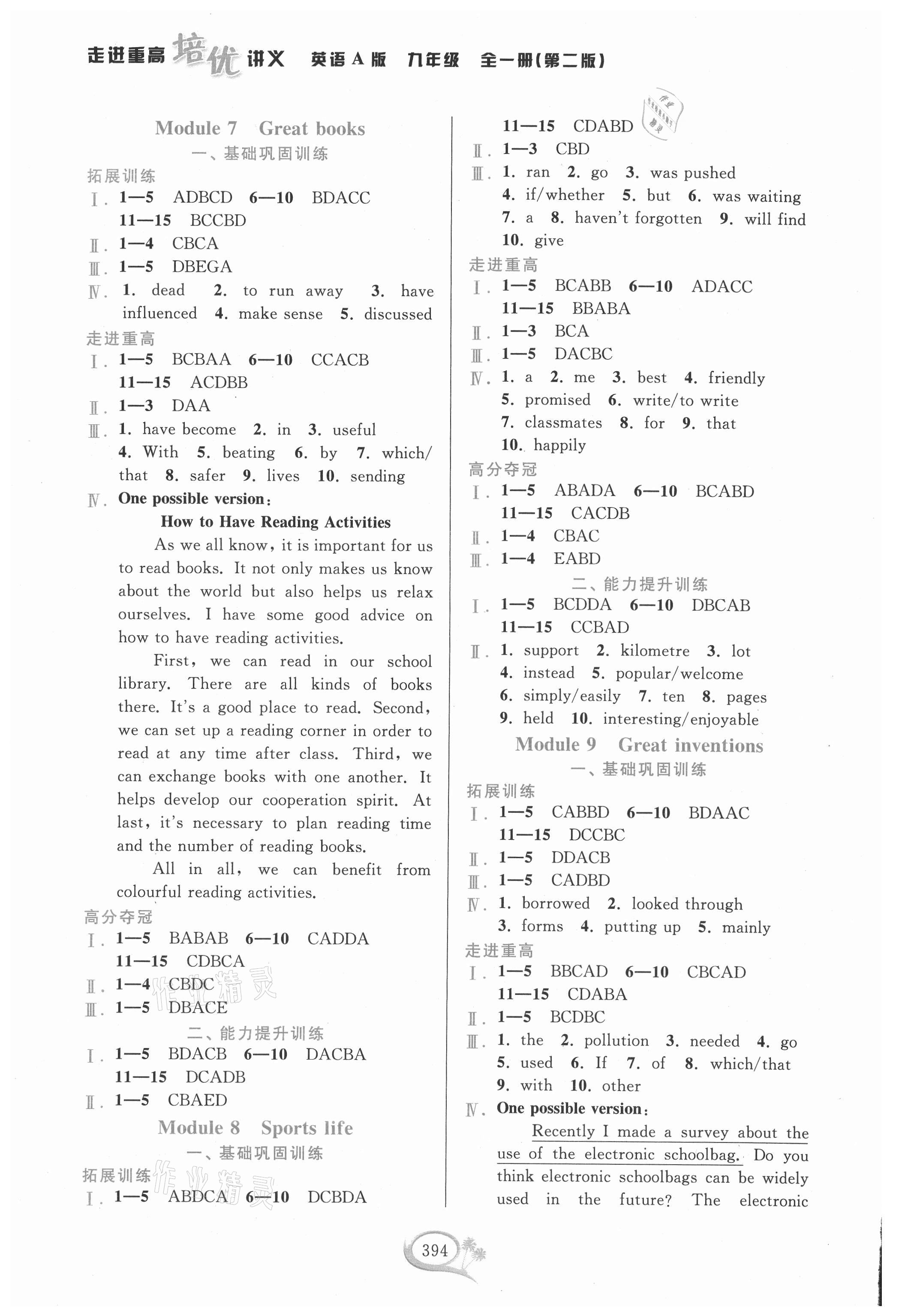 注:目前有些书本章节名称可能整理的还不是很完善,但都是按照顺序排列的,请同学们按照顺序仔细查找。练习册 2021年走进重高培优讲义九年级英语全一册外研版A版 答案主要是用来给同学们做完题方便对答案用的,请勿直接抄袭。