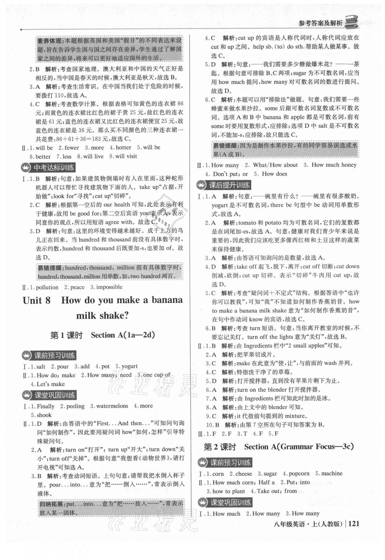 注:目前有些书本章节名称可能整理的还不是很完善,但都是按照顺序排列的,请同学们按照顺序仔细查找。练习册 2021年1加1轻巧夺冠优化训练八年级英语上册人教版 答案主要是用来给同学们做完题方便对答案用的,请勿直接抄袭。