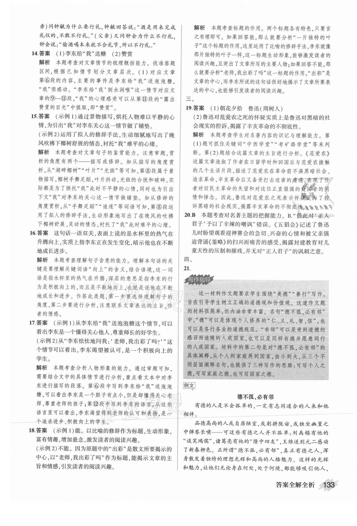 注:目前有些书本章节名称可能整理的还不是很完善,但都是按照顺序排列的,请同学们按照顺序仔细查找。练习册 2021年晨读暮写周周测初中语文七年级上册人教版 答案主要是用来给同学们做完题方便对答案用的,请勿直接抄袭。