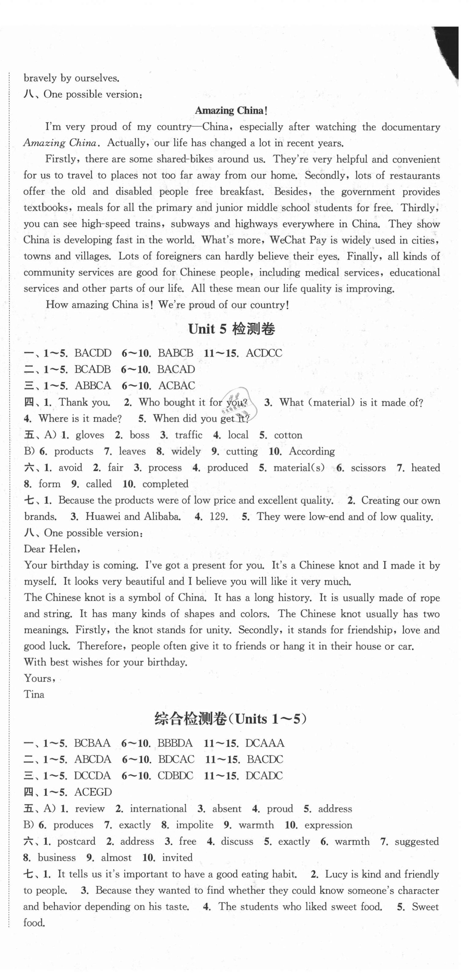 注:目前有些书本章节名称可能整理的还不是很完善,但都是按照顺序排列的,请同学们按照顺序仔细查找。练习册 2021年通城学典活页检测九年级英语全一册人教版 答案主要是用来给同学们做完题方便对答案用的,请勿直接抄袭。