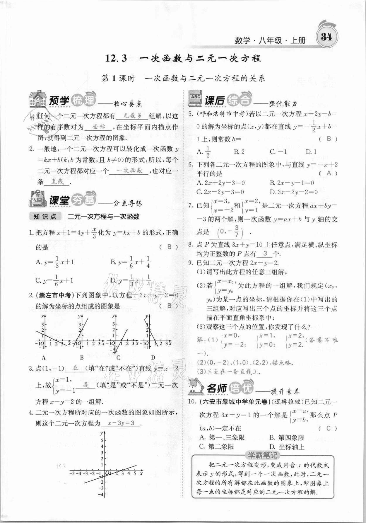 2021年名校课堂内外八年级数学上册沪科版安徽专版