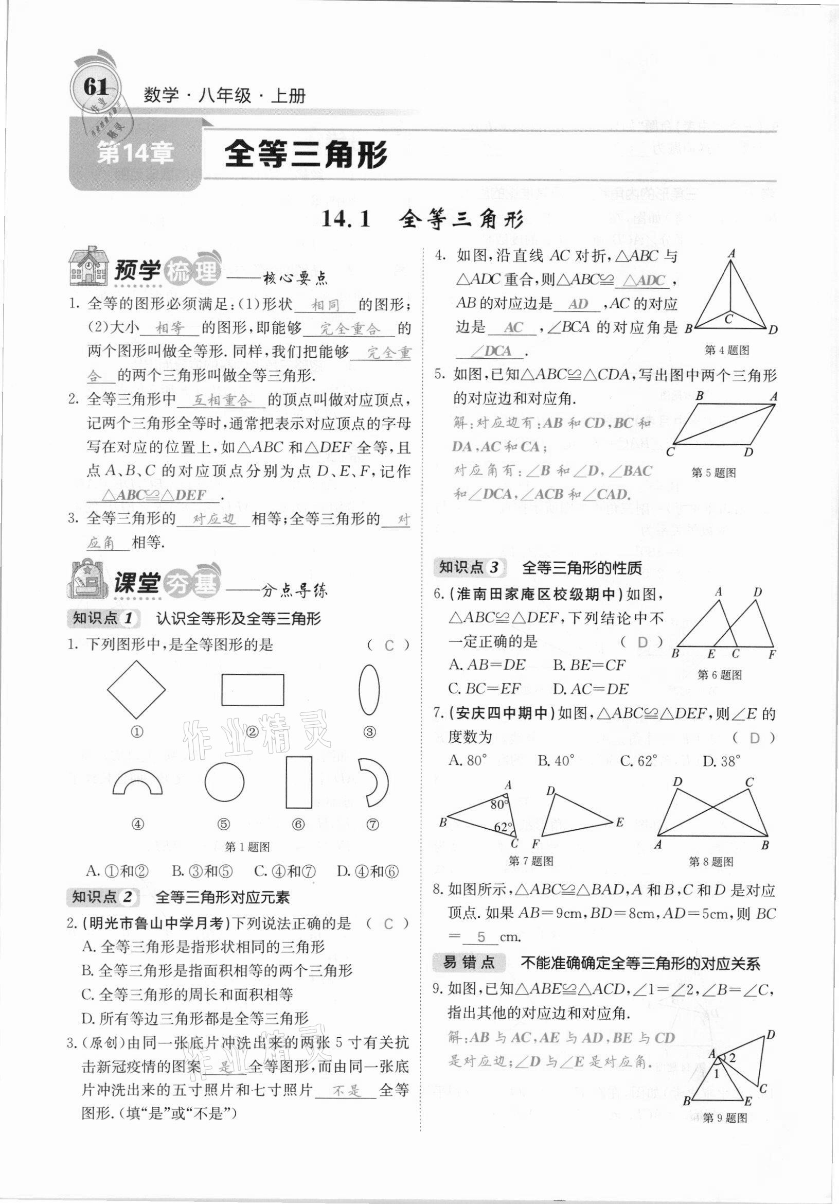 2021年名校课堂内外八年级数学上册沪科版安徽专版