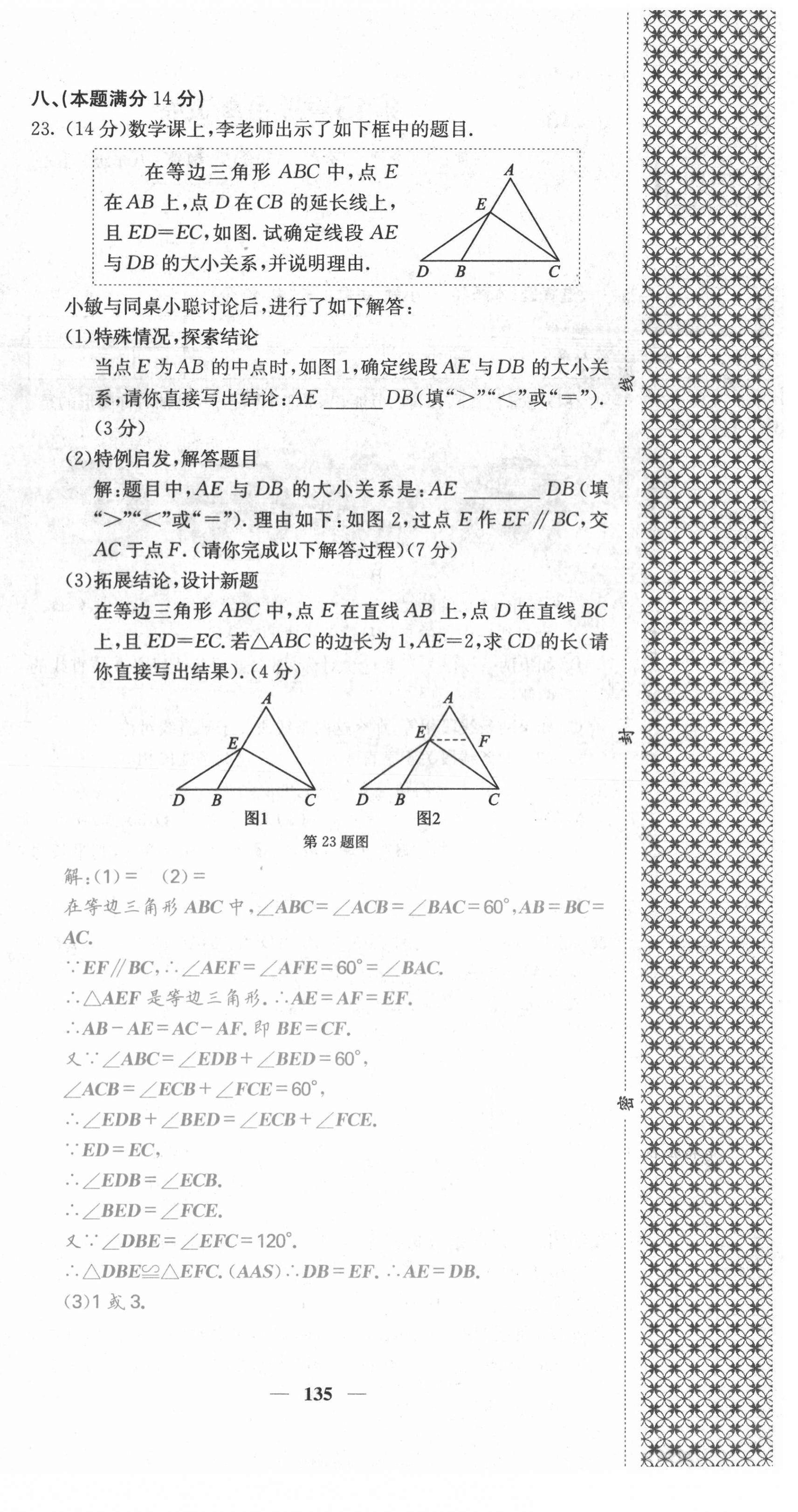 2021年名校课堂内外八年级数学上册沪科版安徽专版