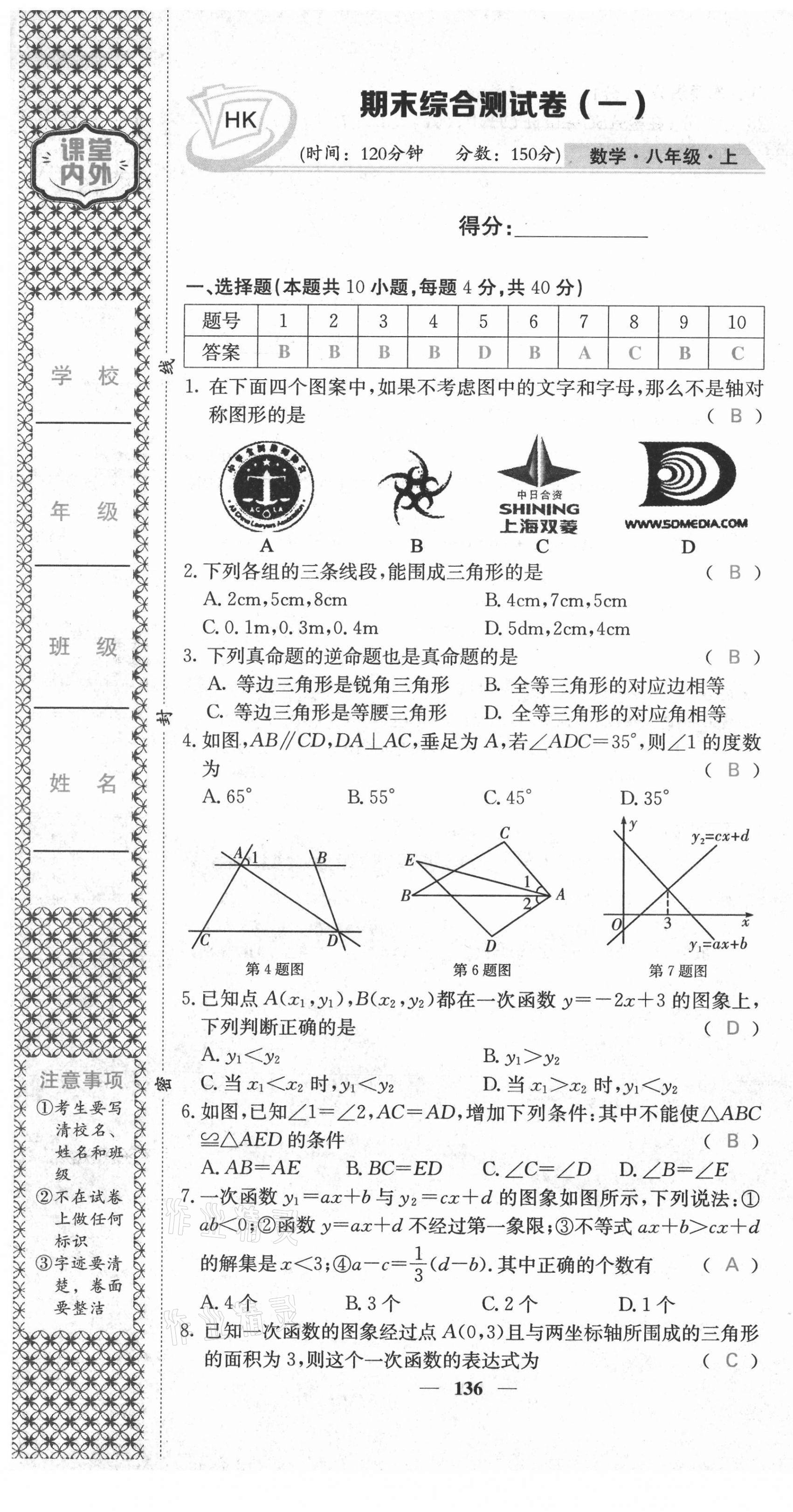 2021年名校课堂内外八年级数学上册沪科版安徽专版