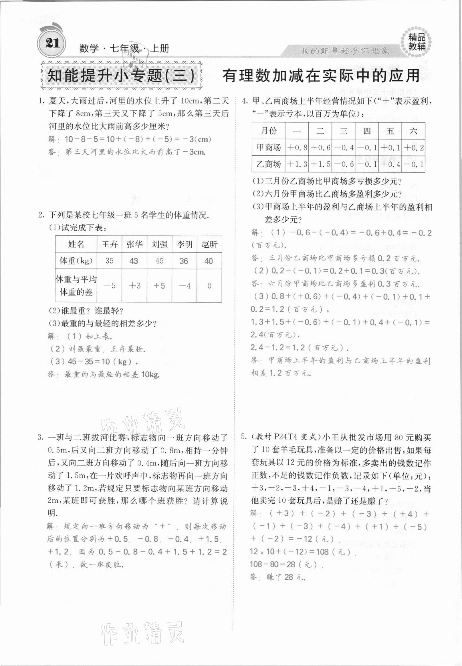 2021年名校课堂内外七年级数学上册沪科版安徽专版