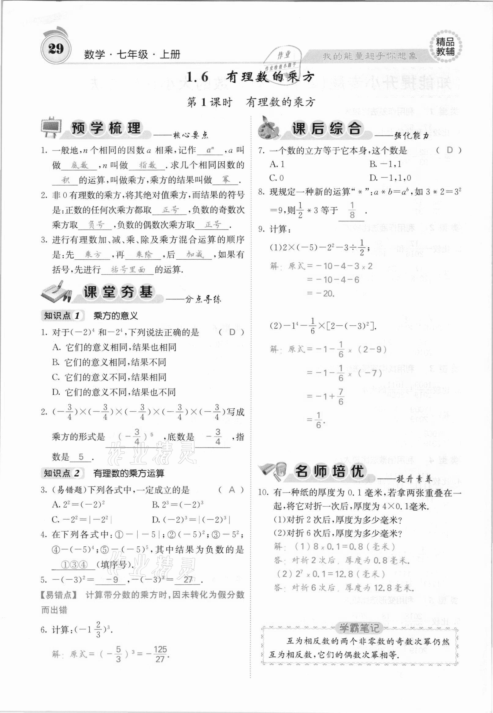 2021年名校课堂内外七年级数学上册沪科版安徽专版