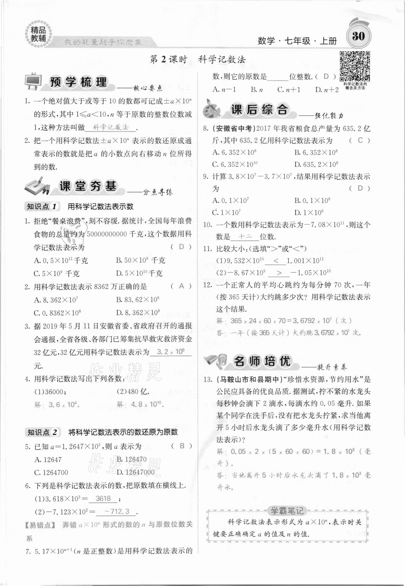 注:目前有些书本章节名称可能整理的还不是很完善,但都是按照顺序排列的,请同学们按照顺序仔细查找。练习册 2021年名校课堂内外七年级数学上册沪科版安徽专版 答案主要是用来给同学们做完题方便对答案用的,请勿直接抄袭。