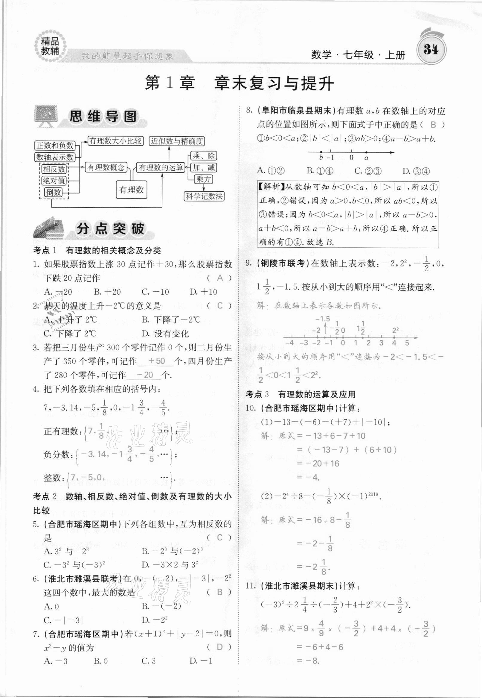 2021年名校课堂内外七年级数学上册沪科版安徽专版