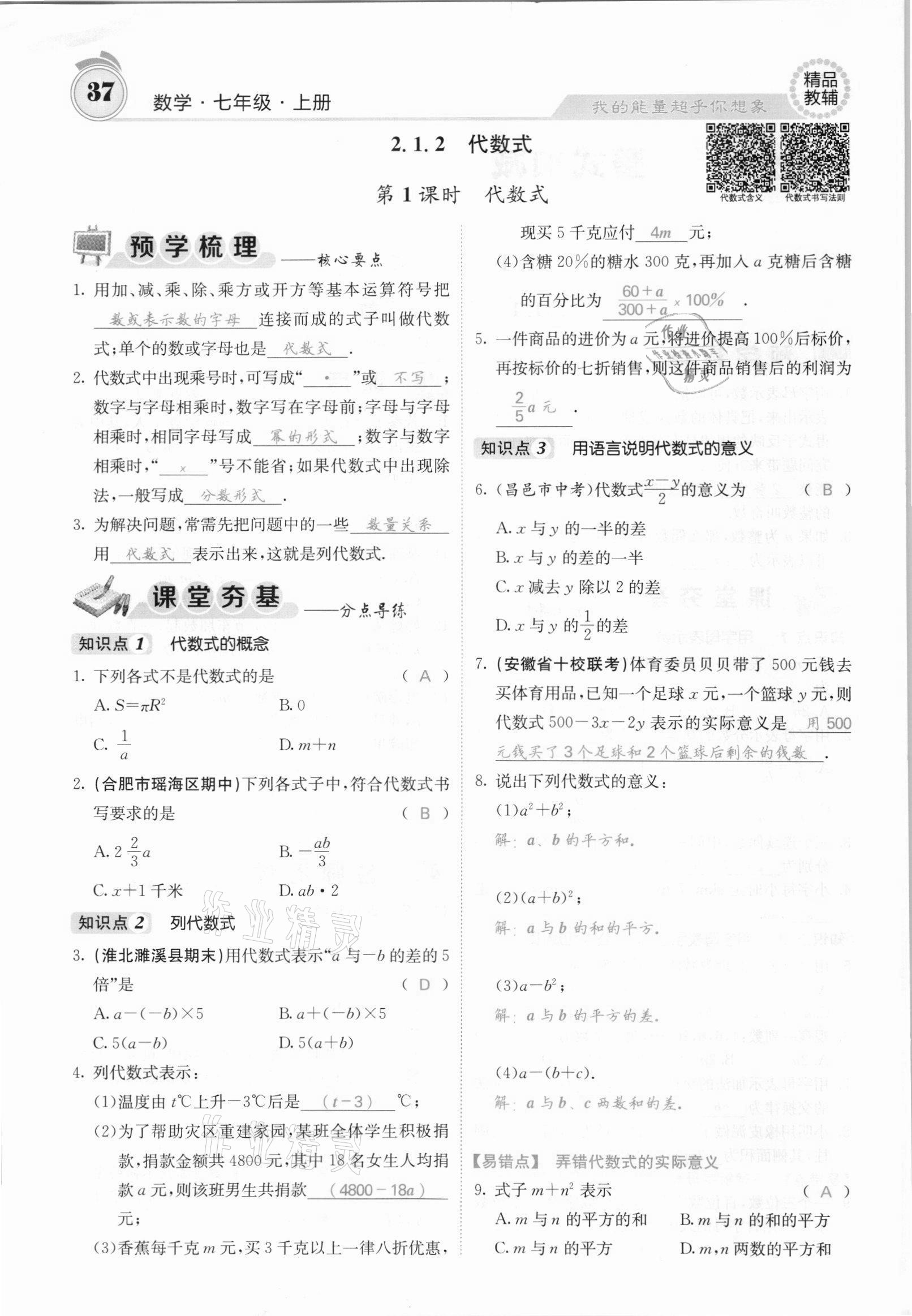 2021年名校课堂内外七年级数学上册沪科版安徽专版