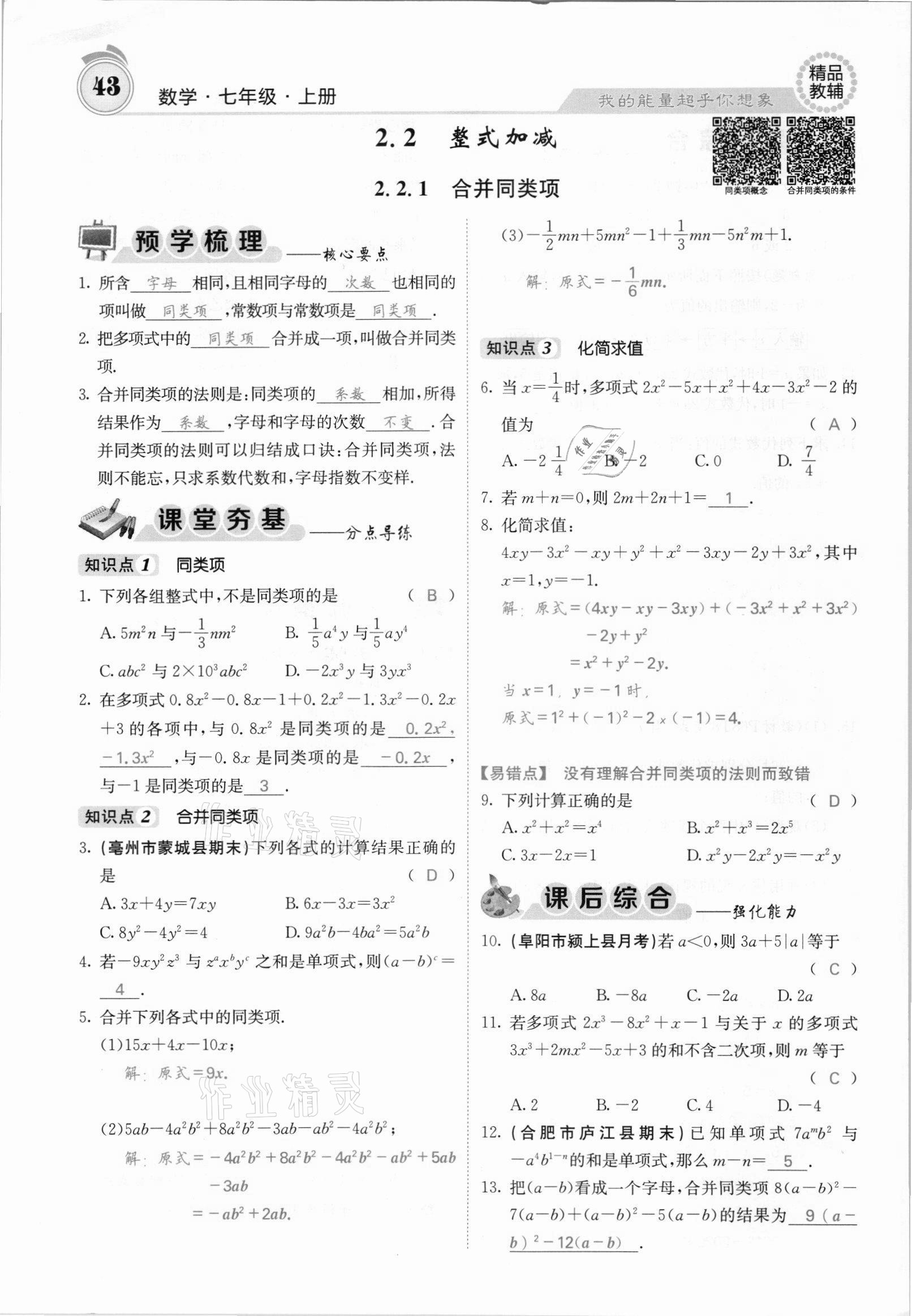 注:目前有些书本章节名称可能整理的还不是很完善,但都是按照顺序排列的,请同学们按照顺序仔细查找。练习册 2021年名校课堂内外七年级数学上册沪科版安徽专版 答案主要是用来给同学们做完题方便对答案用的,请勿直接抄袭。