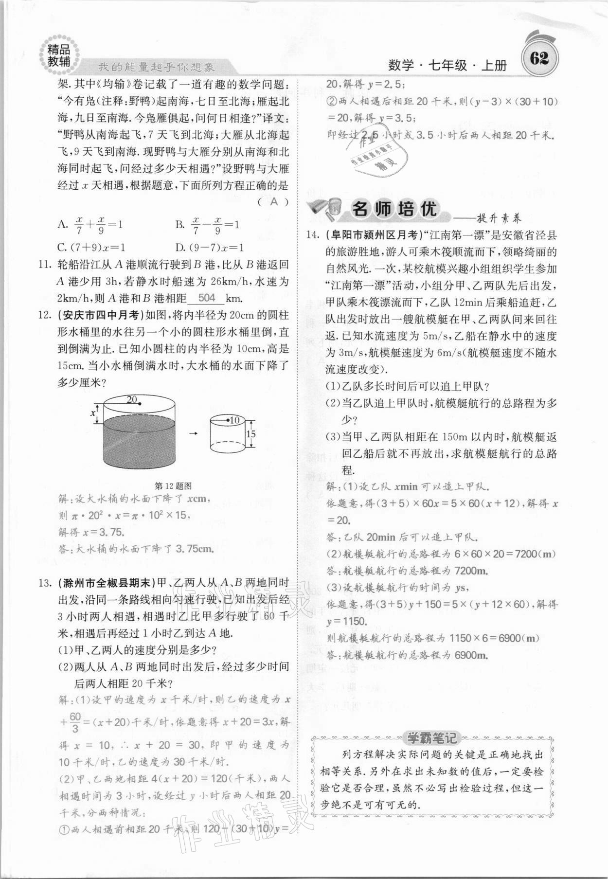 2021年名校课堂内外七年级数学上册沪科版安徽专版