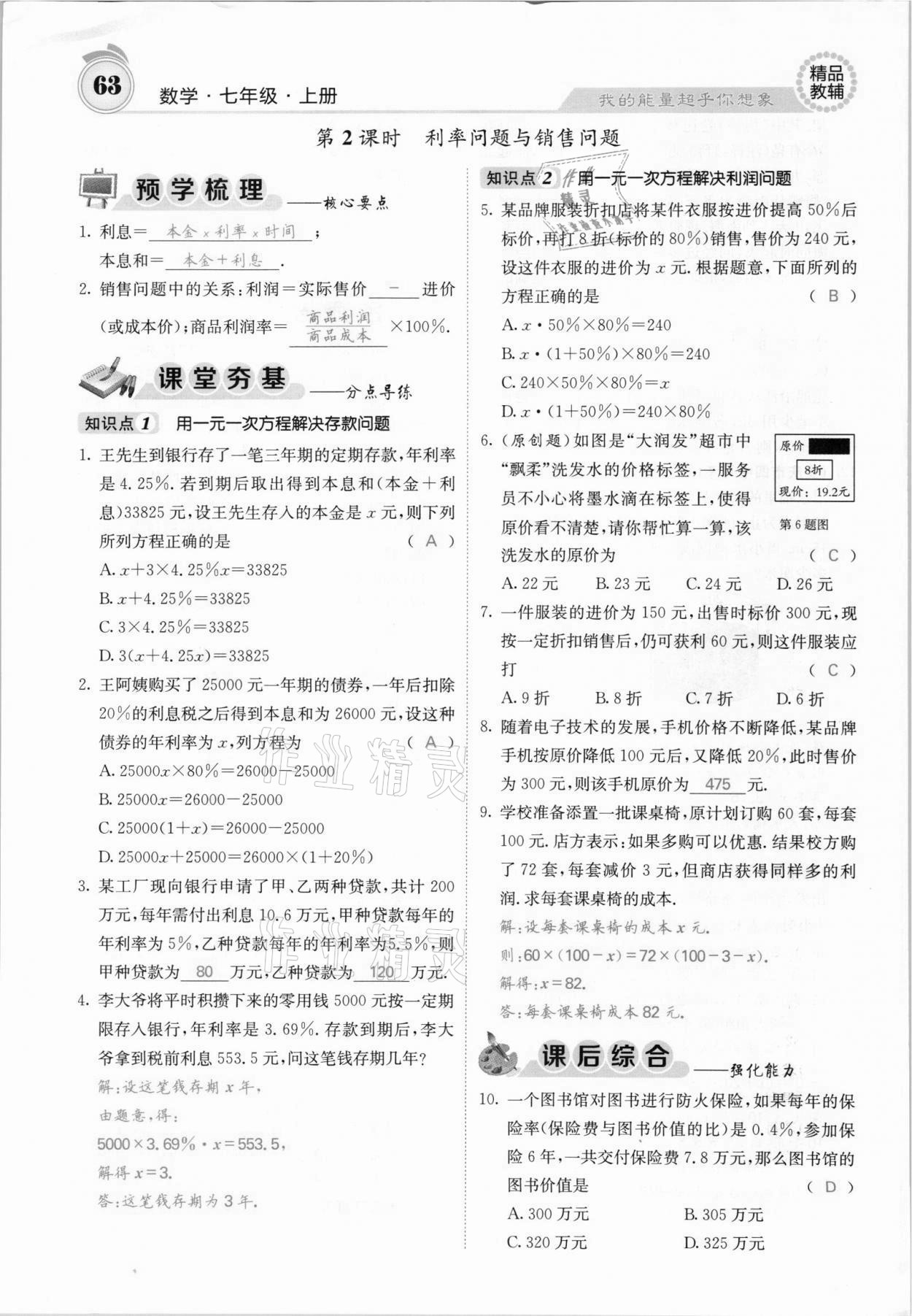 2021年名校课堂内外七年级数学上册沪科版安徽专版