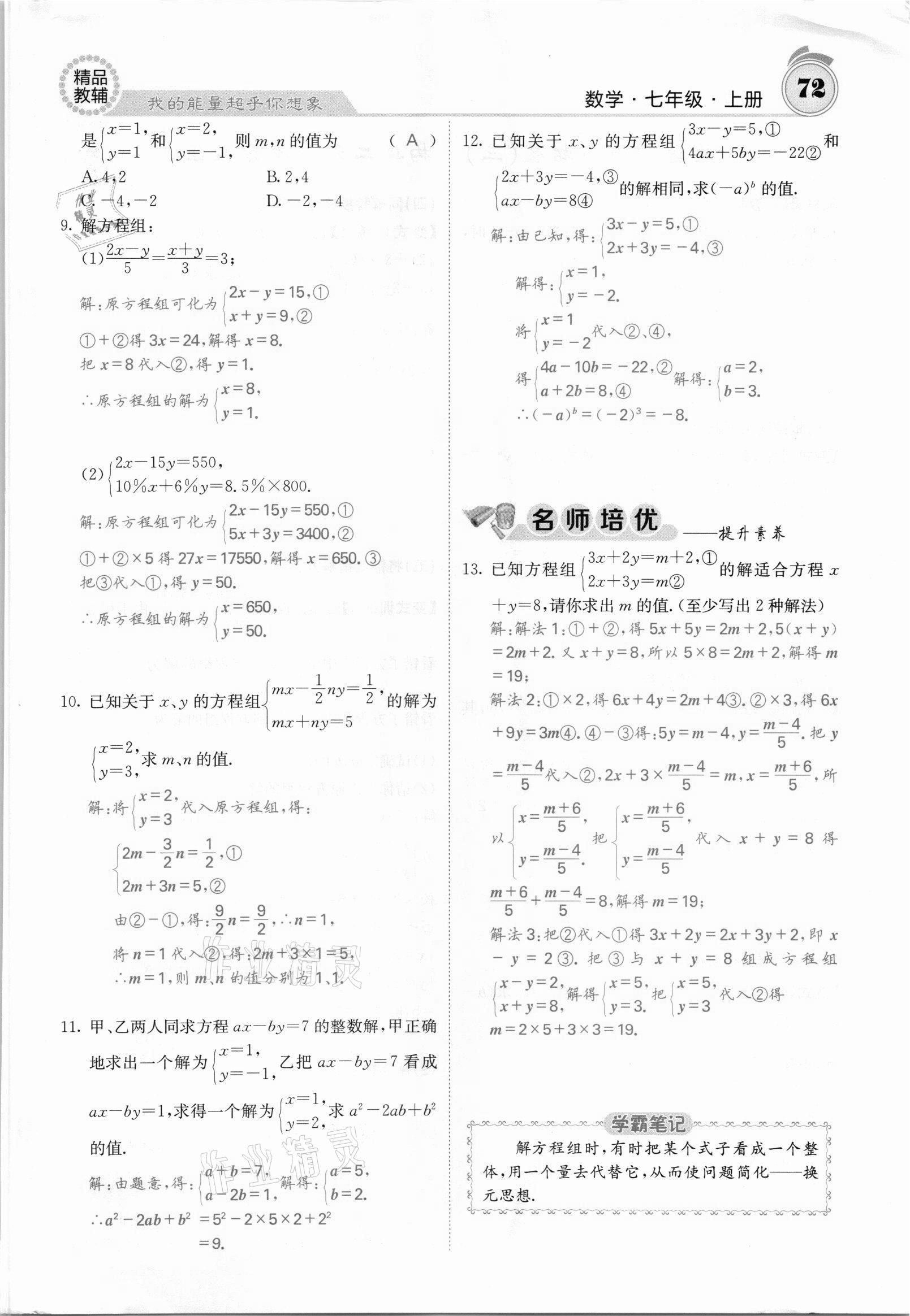 2021年名校课堂内外七年级数学上册沪科版安徽专版