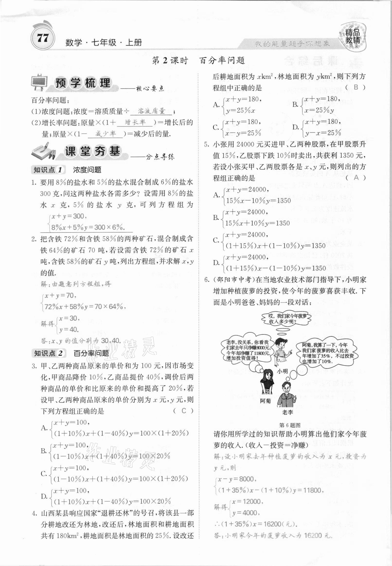 2021年名校课堂内外七年级数学上册沪科版安徽专版