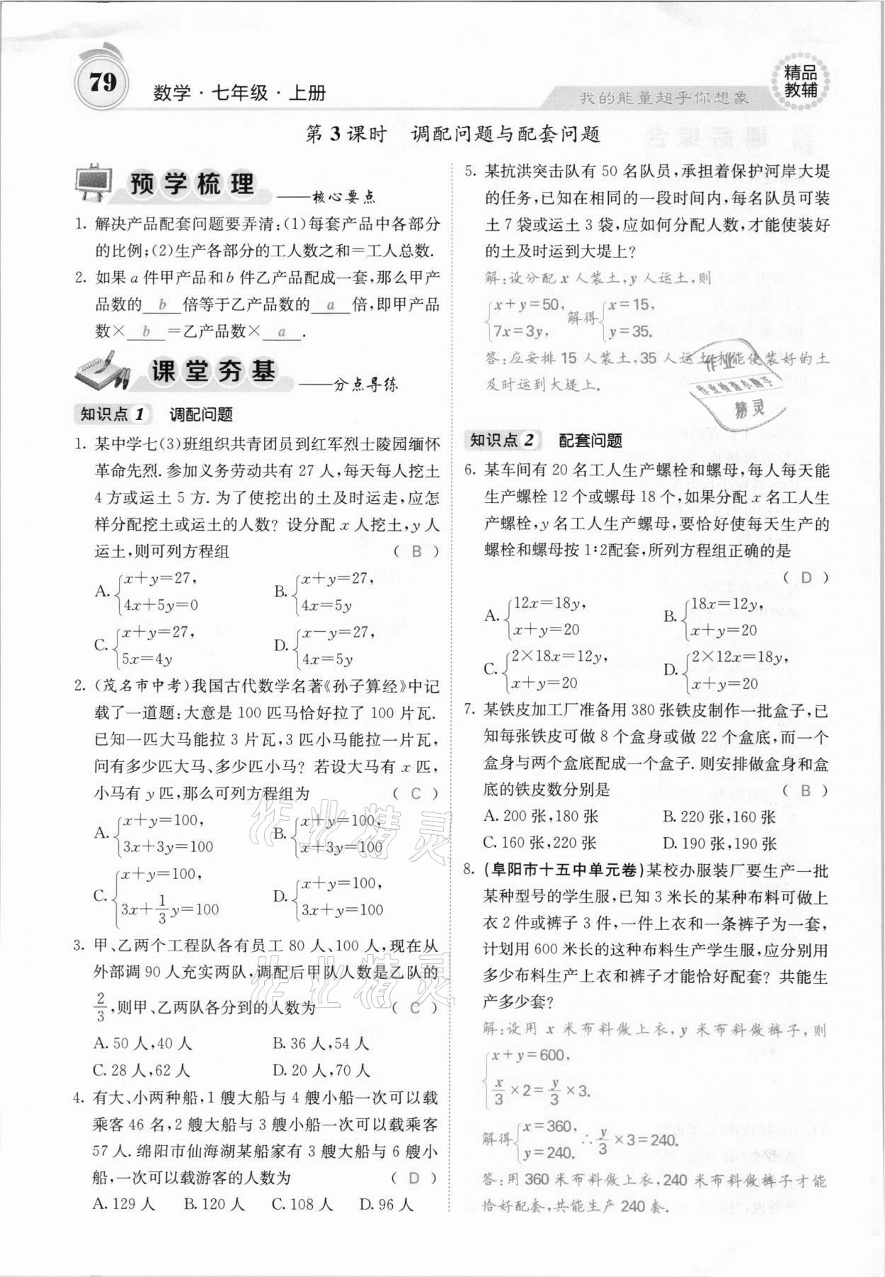 2021年名校课堂内外七年级数学上册沪科版安徽专版