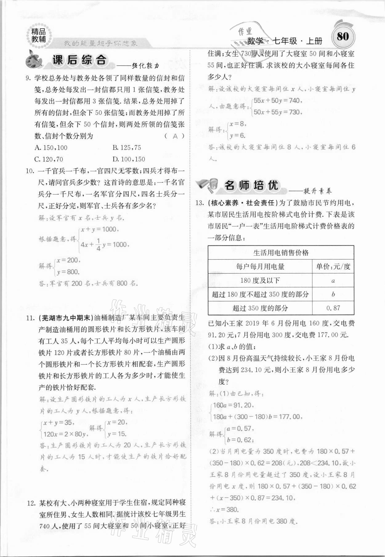 2021年名校课堂内外七年级数学上册沪科版安徽专版