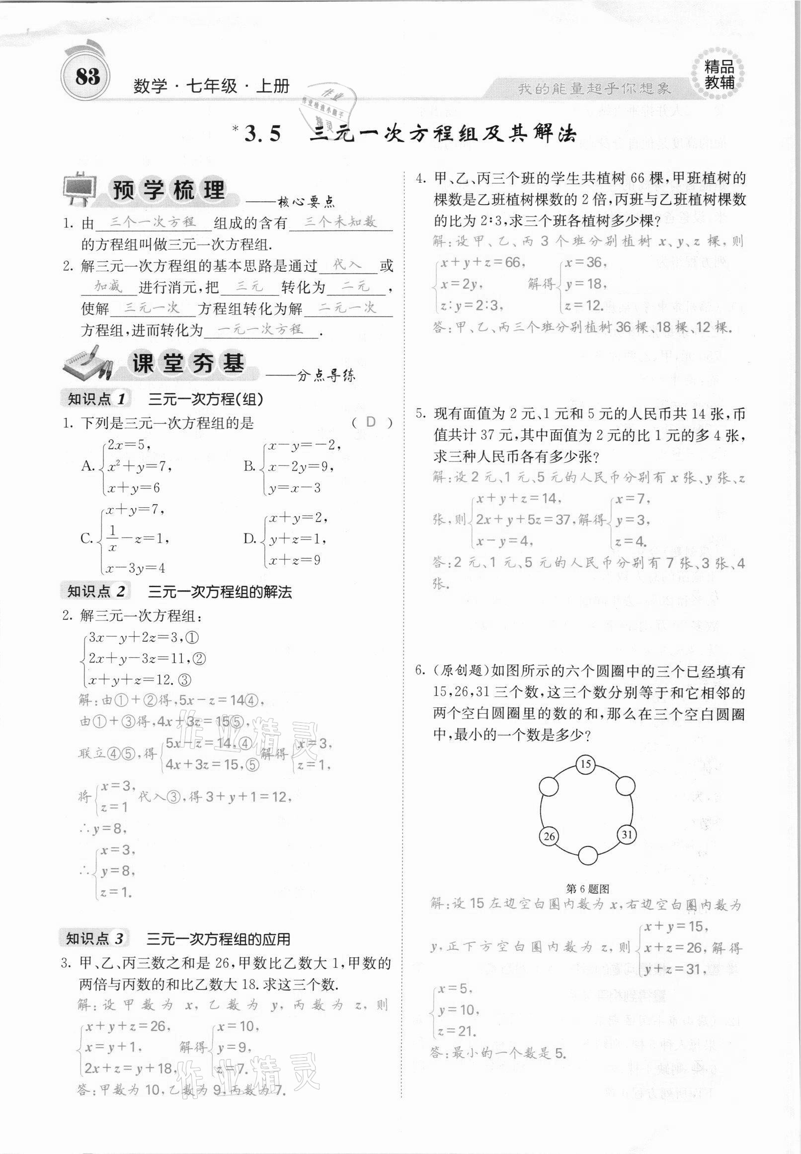 注:目前有些书本章节名称可能整理的还不是很完善,但都是按照顺序排列的,请同学们按照顺序仔细查找。练习册 2021年名校课堂内外七年级数学上册沪科版安徽专版 答案主要是用来给同学们做完题方便对答案用的,请勿直接抄袭。