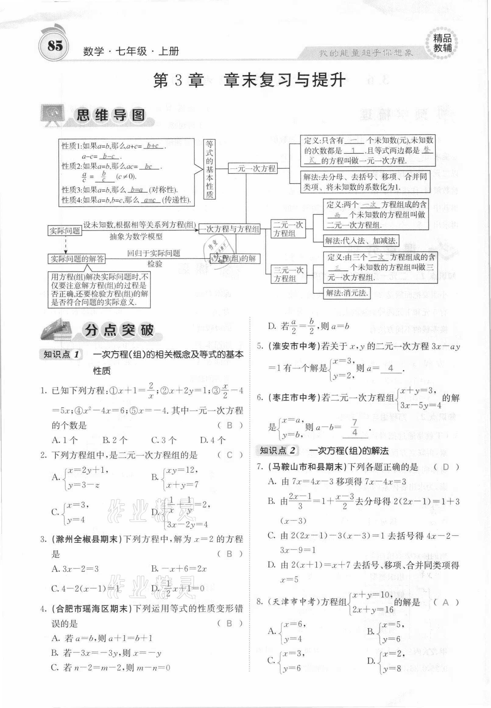 2021年名校课堂内外七年级数学上册沪科版安徽专版