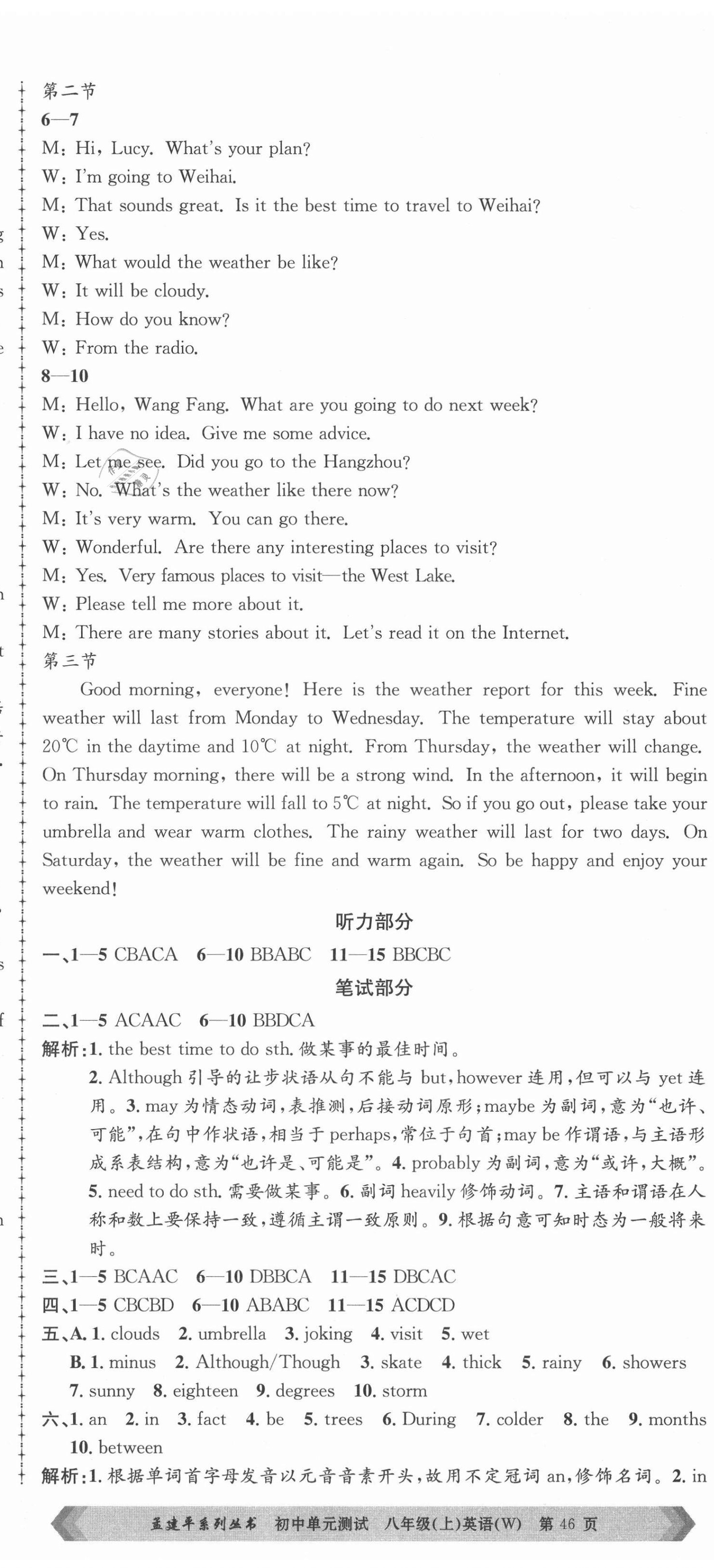 注:目前有些书本章节名称可能整理的还不是很完善,但都是按照顺序排列的,请同学们按照顺序仔细查找。练习册 2021年孟建平单元测试八年级英语上册外研版 答案主要是用来给同学们做完题方便对答案用的,请勿直接抄袭。