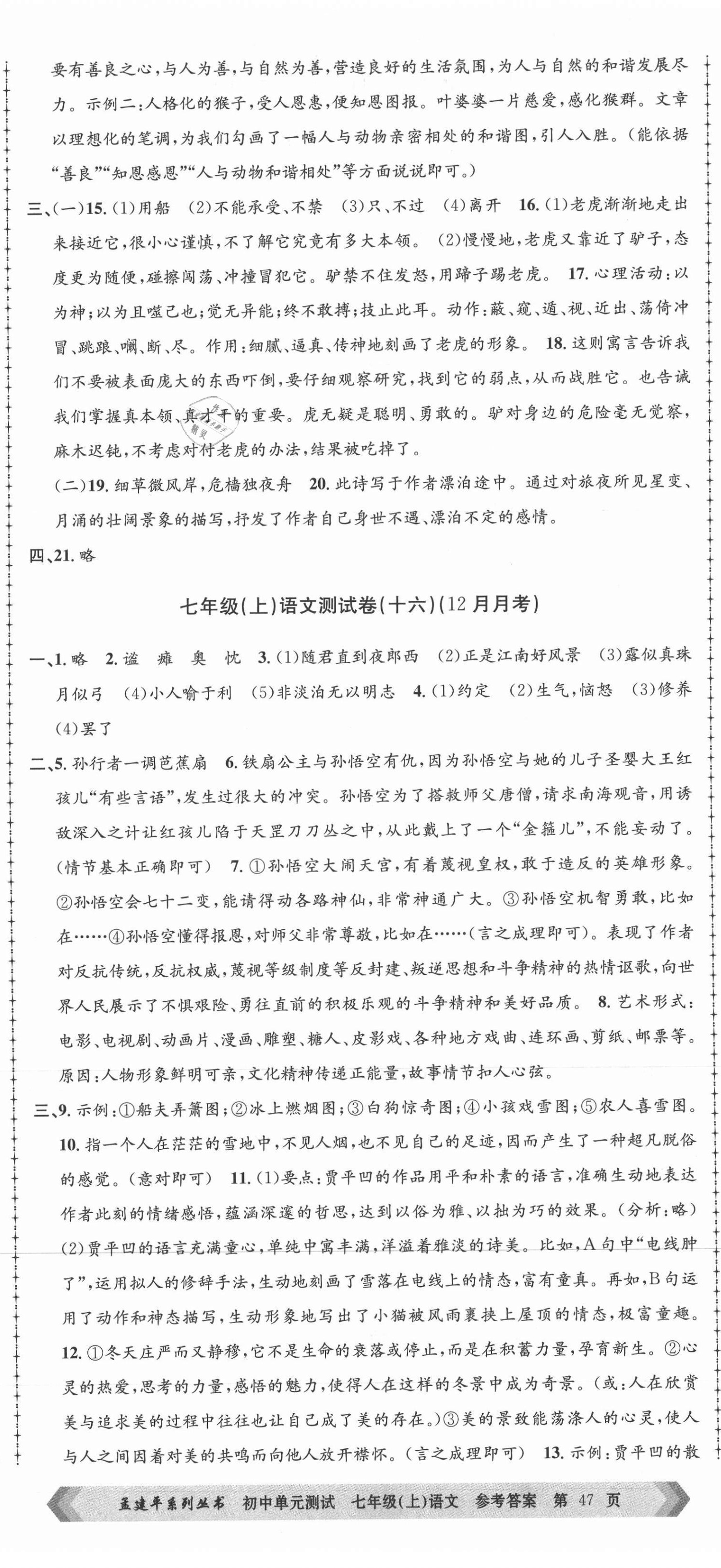 注:目前有些书本章节名称可能整理的还不是很完善,但都是按照顺序排列的,请同学们按照顺序仔细查找。练习册 2021年孟建平单元测试七年级语文上册人教版 答案主要是用来给同学们做完题方便对答案用的,请勿直接抄袭。