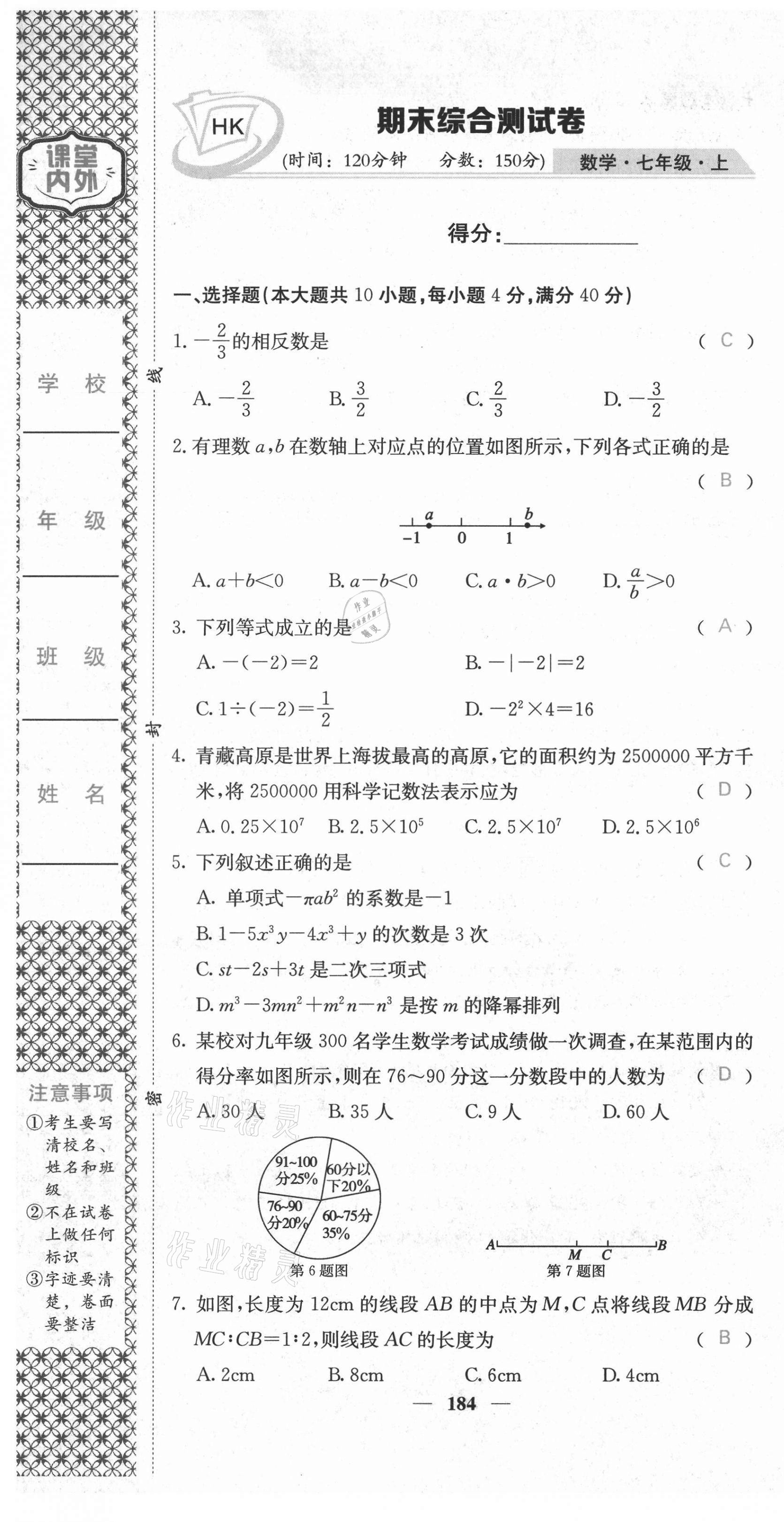 2021年名校课堂内外七年级数学上册沪科版安徽专版