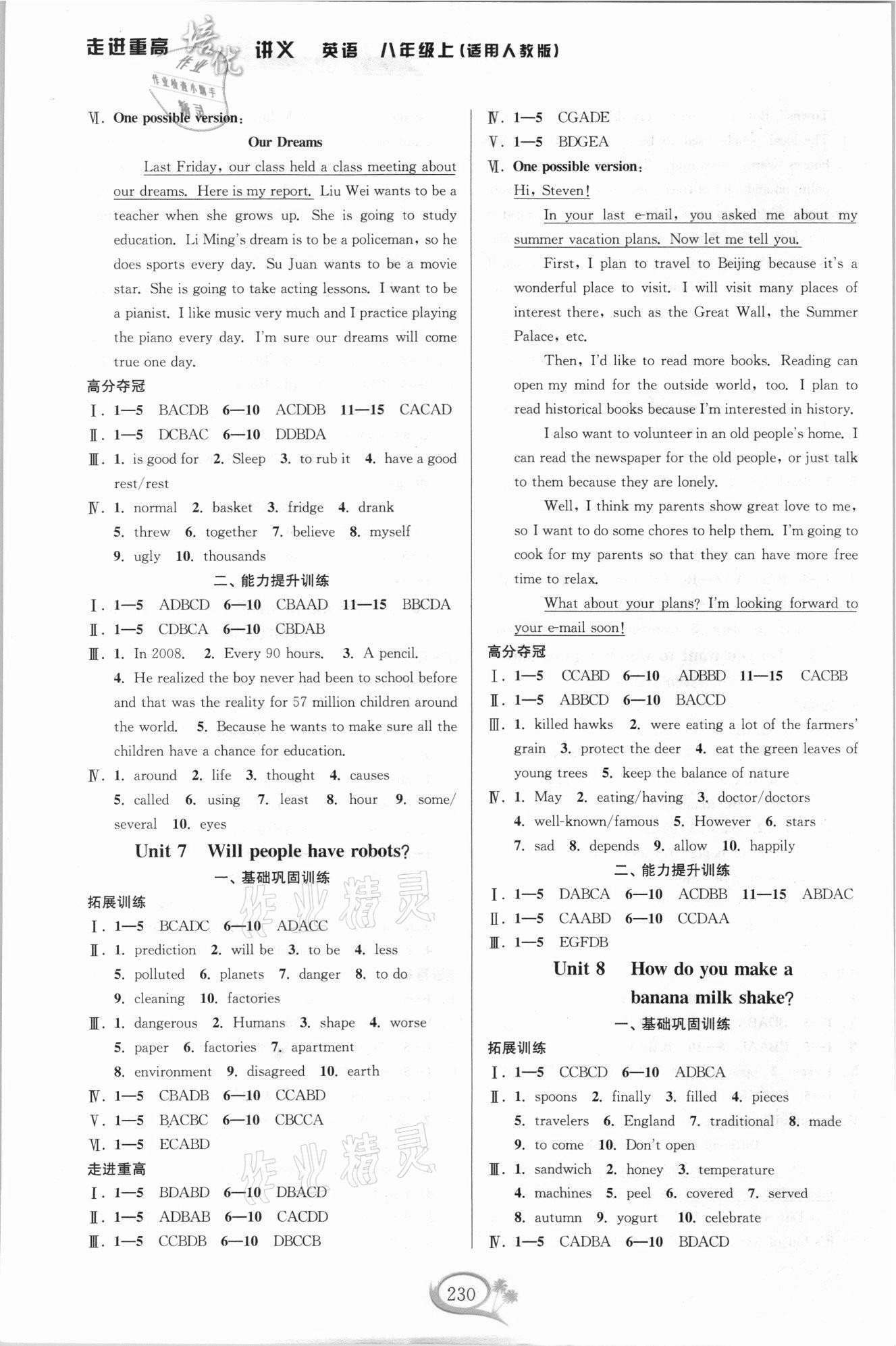 注:目前有些书本章节名称可能整理的还不是很完善,但都是按照顺序排列的,请同学们按照顺序仔细查找。练习册 2021年走进重高培优讲义八年级英语上册人教版 答案主要是用来给同学们做完题方便对答案用的,请勿直接抄袭。