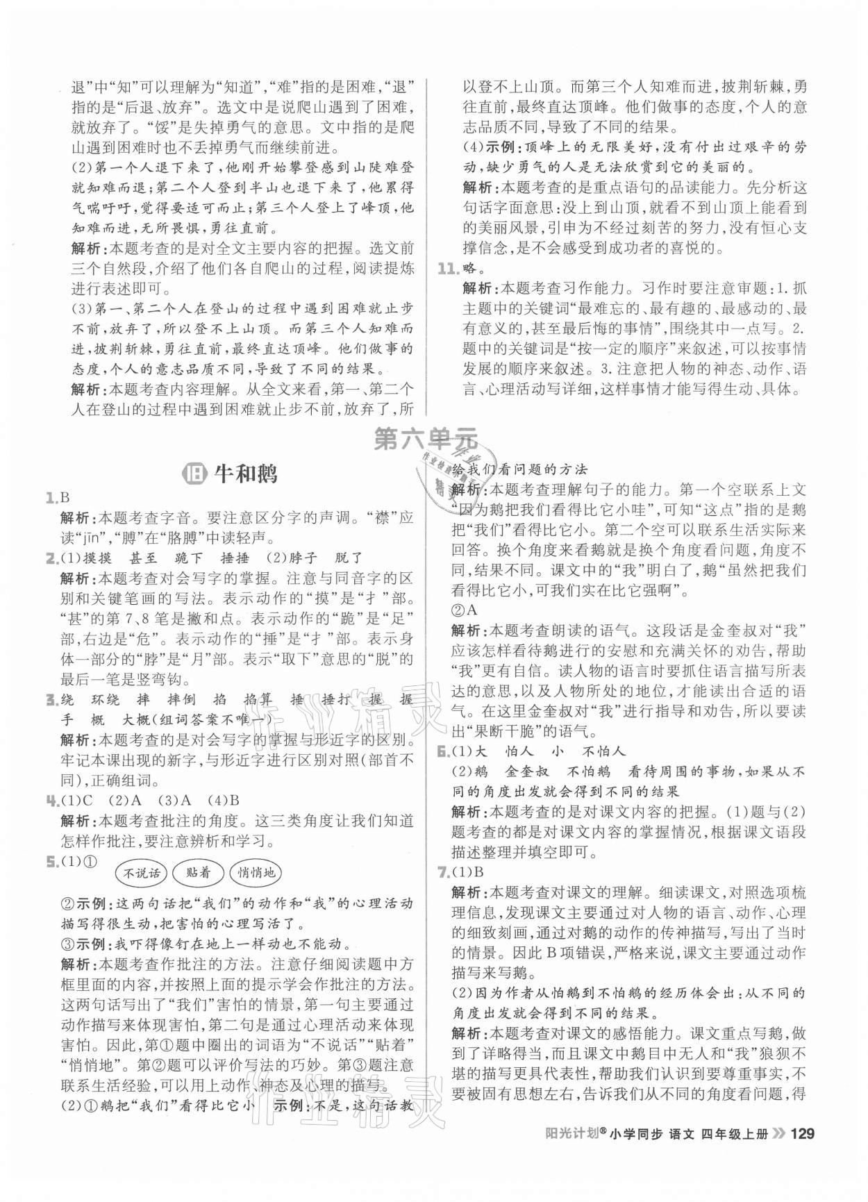 注:目前有些书本章节名称可能整理的还不是很完善,但都是按照顺序排列的,请同学们按照顺序仔细查找。练习册 2021年阳光计划小学同步四年级语文上册人教版 答案主要是用来给同学们做完题方便对答案用的,请勿直接抄袭。