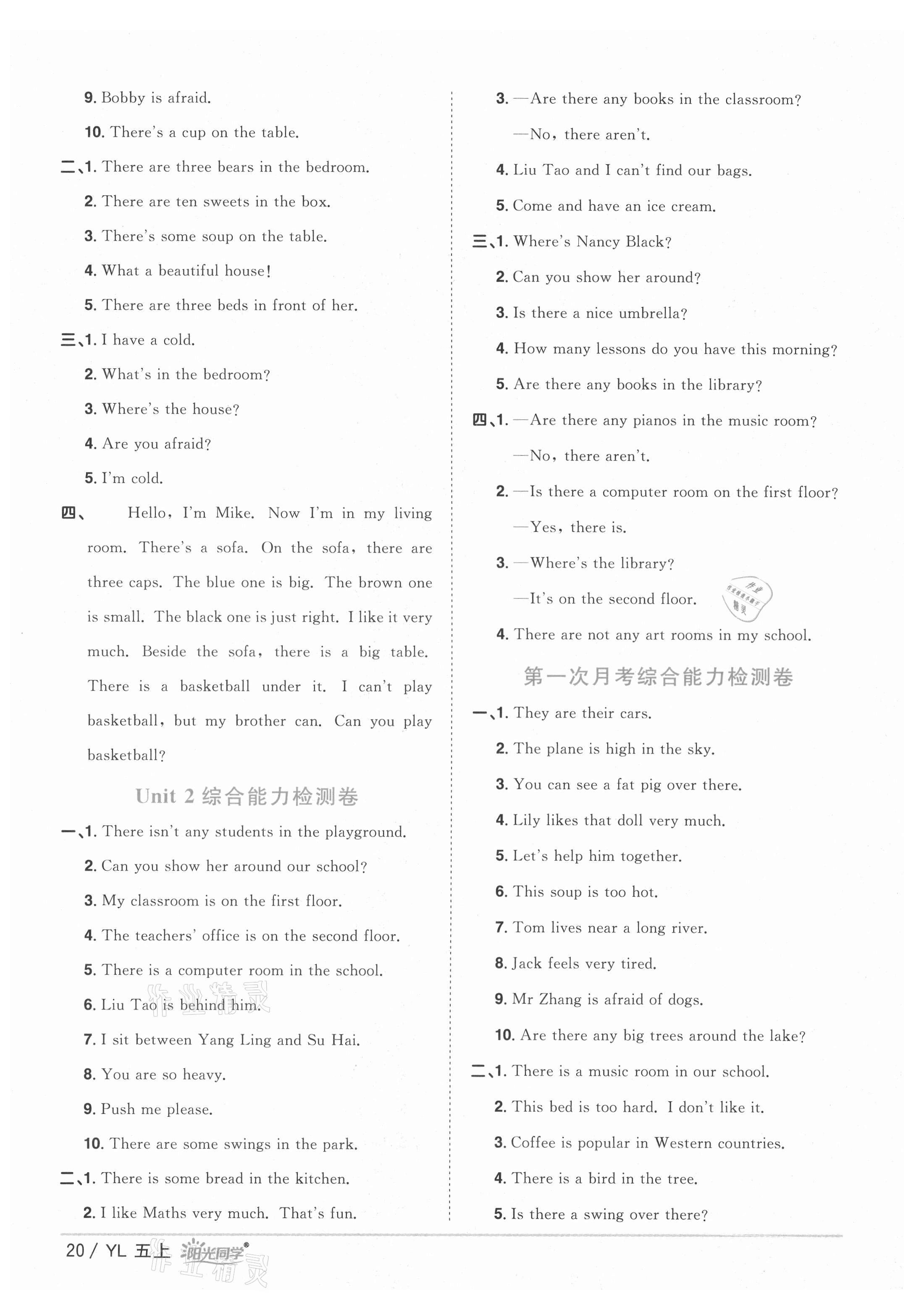 注:目前有些书本章节名称可能整理的还不是很完善,但都是按照顺序排列的,请同学们按照顺序仔细查找。练习册 2021年阳光同学课时优化作业五年级英语上册译林版淮宿连专版 答案主要是用来给同学们做完题方便对答案用的,请勿直接抄袭。
