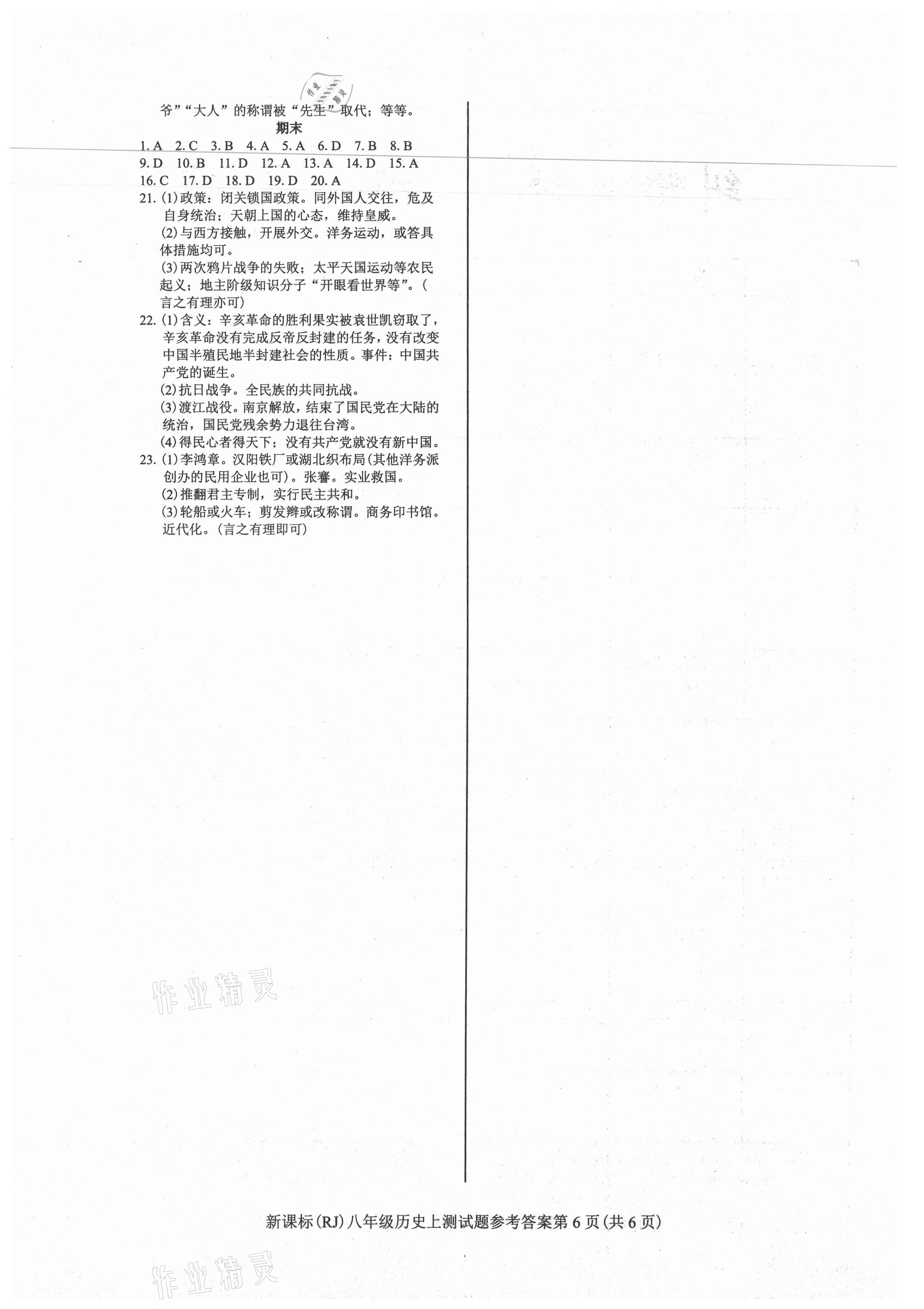 注:目前有些书本章节名称可能整理的还不是很完善,但都是按照顺序排列的,请同学们按照顺序仔细查找。练习册 2021年学考2加1八年级历史上册人教版 答案主要是用来给同学们做完题方便对答案用的,请勿直接抄袭。