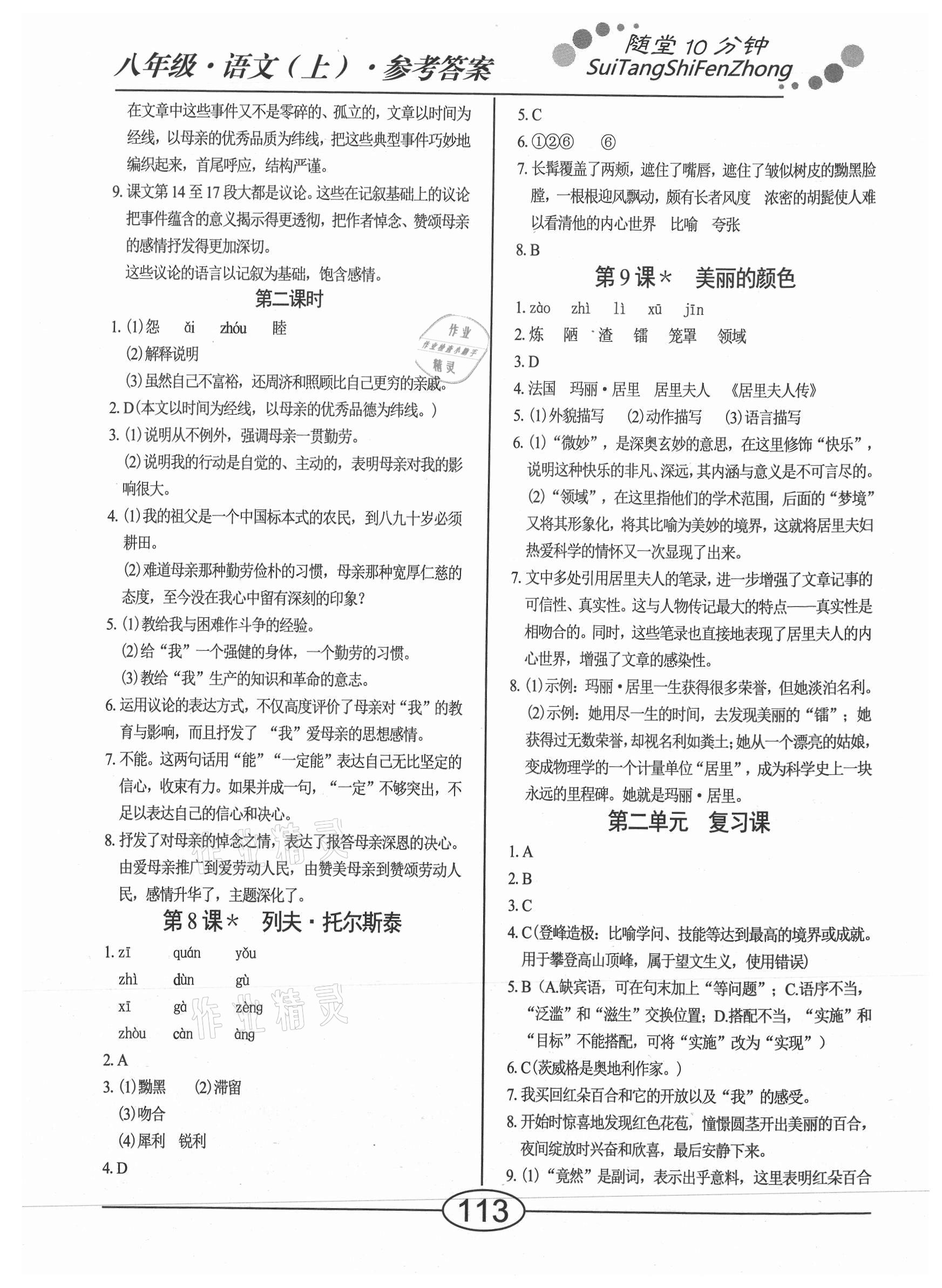 注:目前有些书本章节名称可能整理的还不是很完善,但都是按照顺序排列的,请同学们按照顺序仔细查找。练习册 2021年学考2加1八年级语文上册人教版 答案主要是用来给同学们做完题方便对答案用的,请勿直接抄袭。
