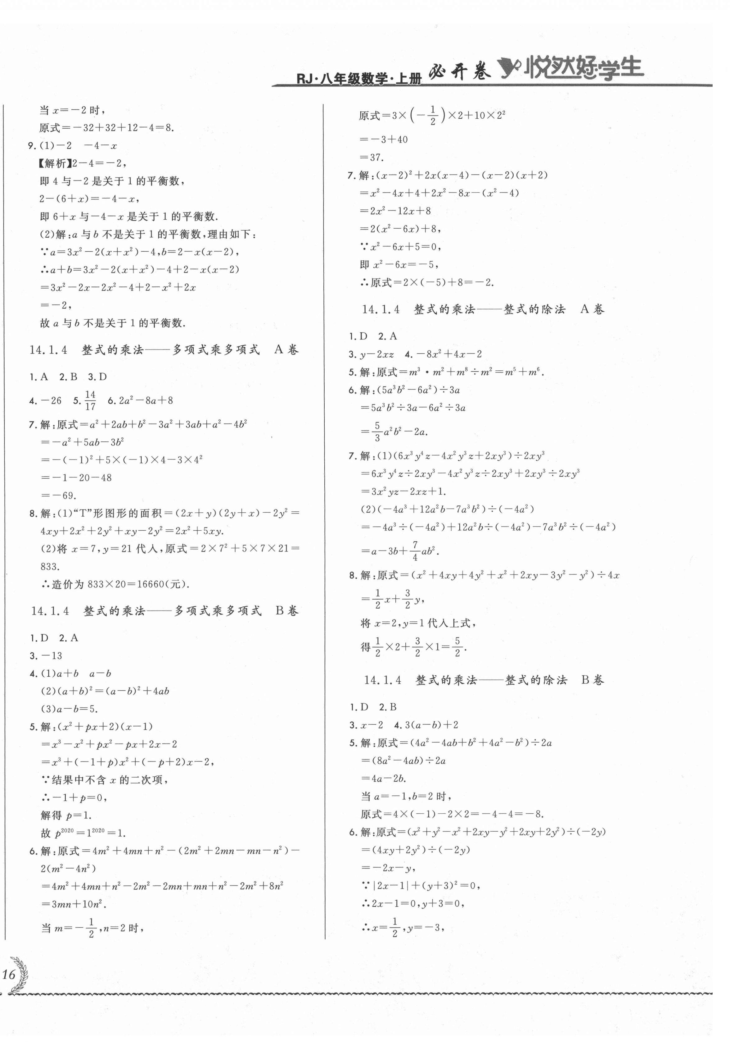 注:目前有些书本章节名称可能整理的还不是很完善,但都是按照顺序排列的,请同学们按照顺序仔细查找。练习册 2021年悦然好学生必开卷八年级数学上册人教版吉林专版 答案主要是用来给同学们做完题方便对答案用的,请勿直接抄袭。