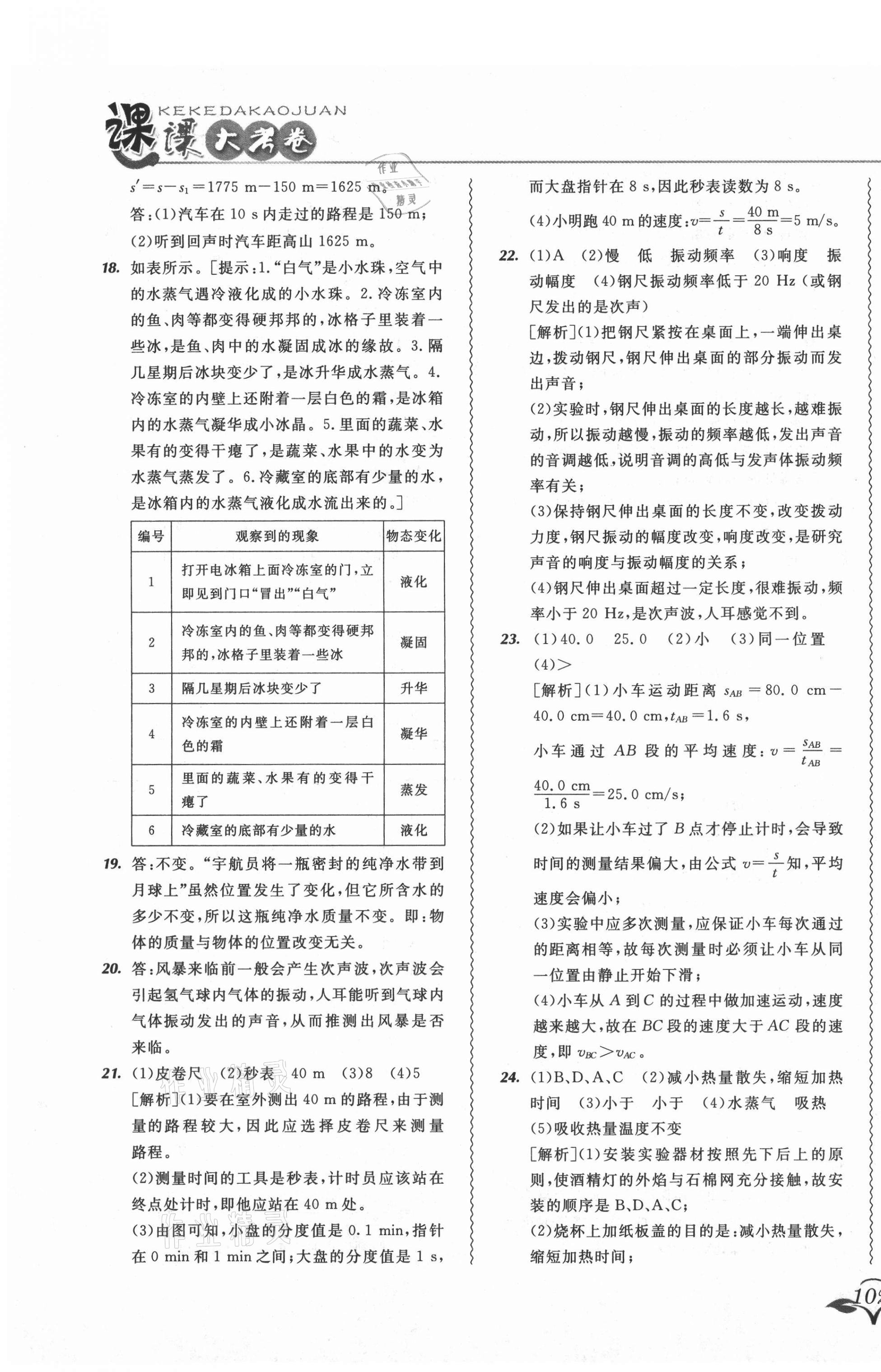 2021年北大绿卡课课大考卷八年级物理上册人教版吉林专版