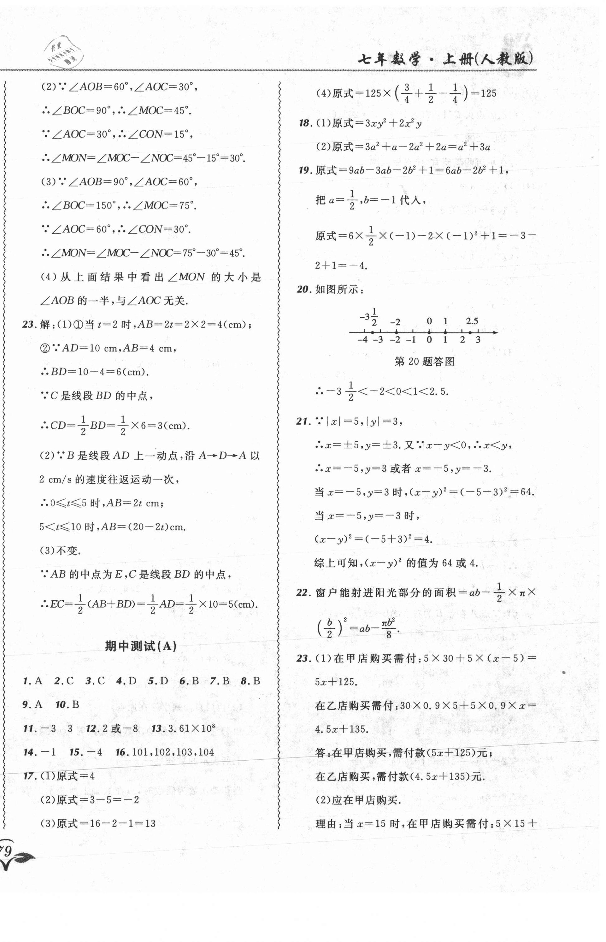 2021年北大绿卡课课大考卷七年级数学上册人教版吉林专版