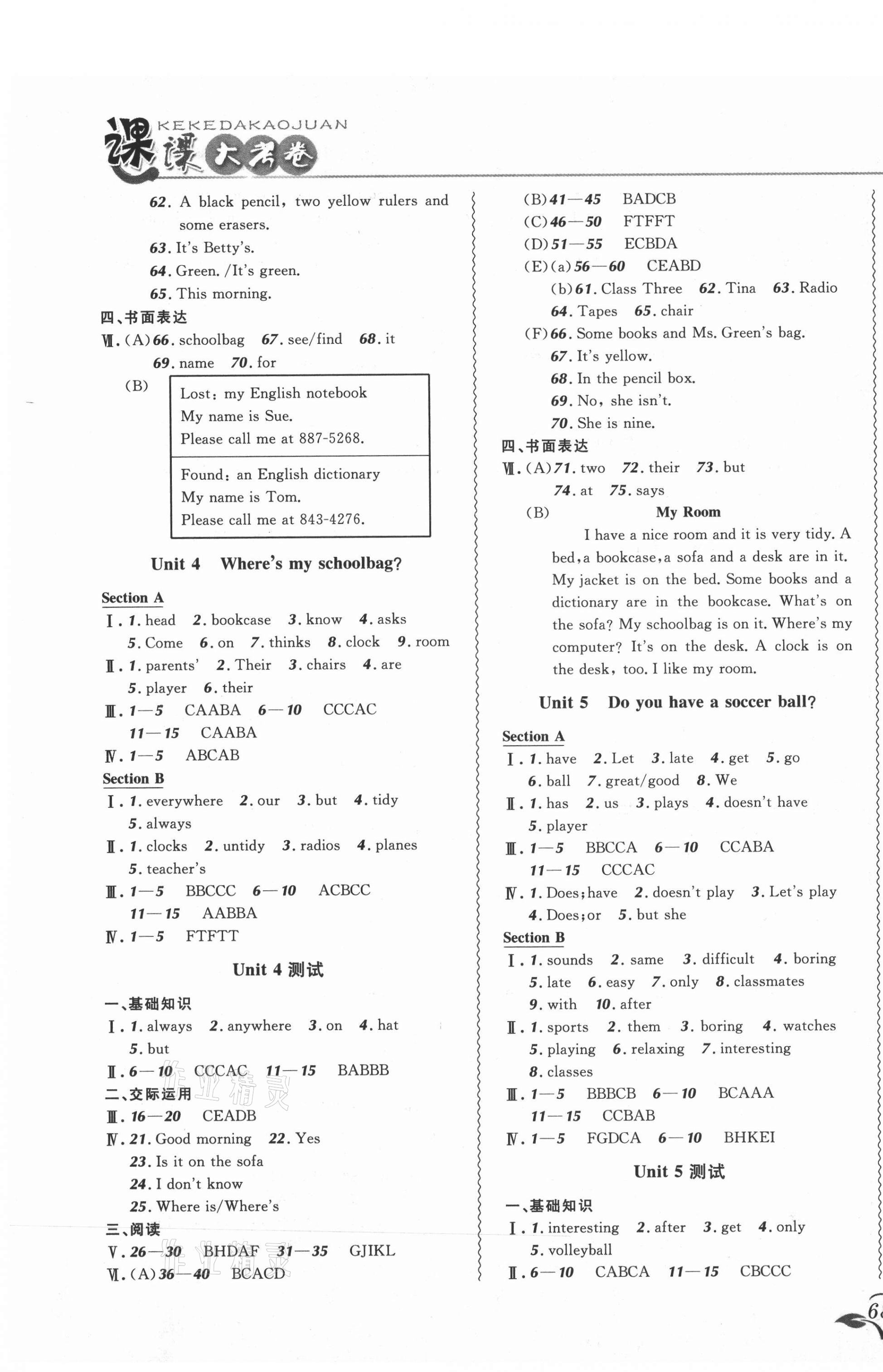 注:目前有些书本章节名称可能整理的还不是很完善,但都是按照顺序排列的,请同学们按照顺序仔细查找。练习册 2021年北大绿卡课课大考卷七年级英语上册人教版吉林专版 答案主要是用来给同学们做完题方便对答案用的,请勿直接抄袭。