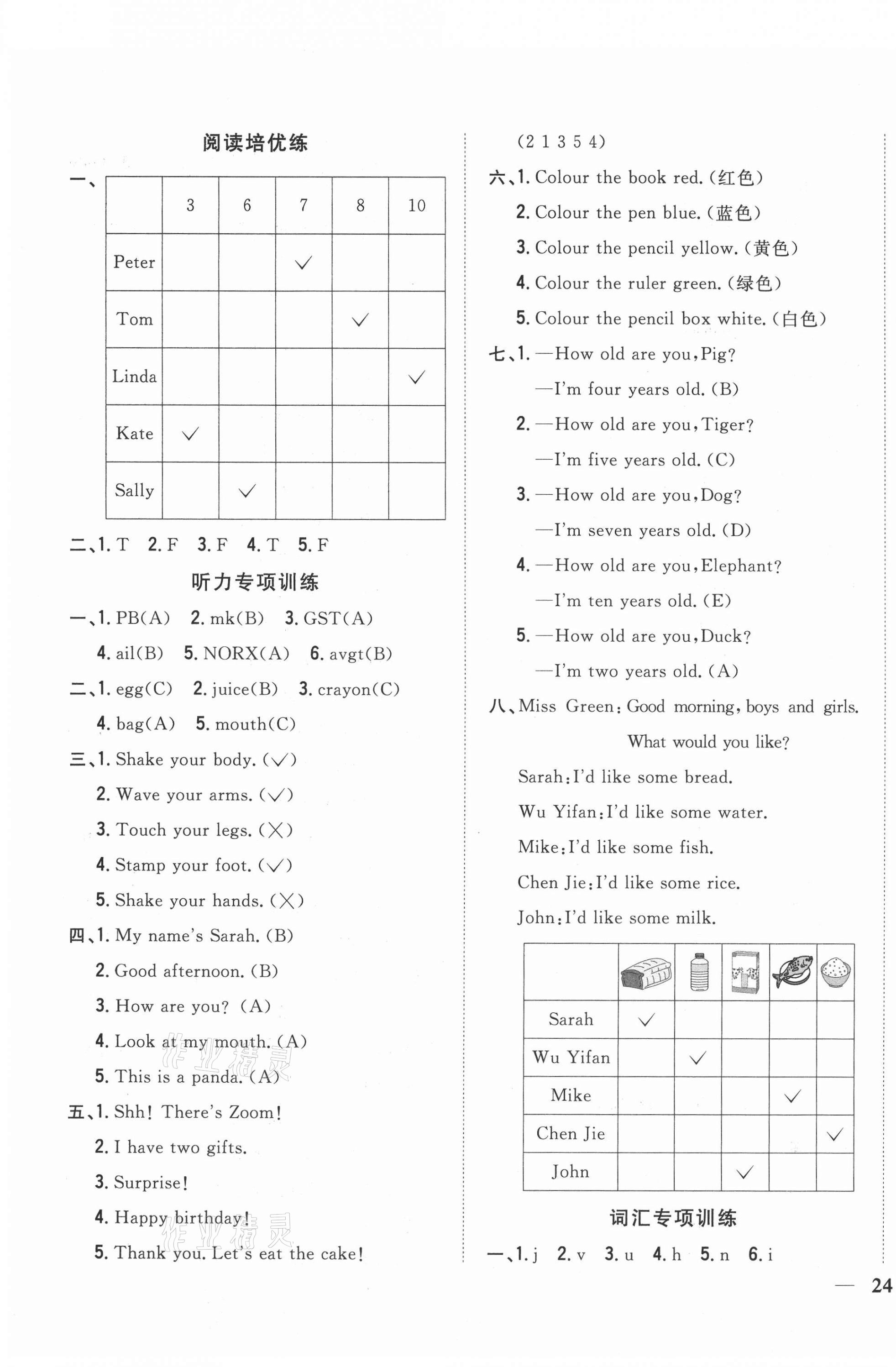 注:目前有些书本章节名称可能整理的还不是很完善,但都是按照顺序排列的,请同学们按照顺序仔细查找。练习册 2021年全科王同步课时练习三年级英语上册人教版 答案主要是用来给同学们做完题方便对答案用的,请勿直接抄袭。
