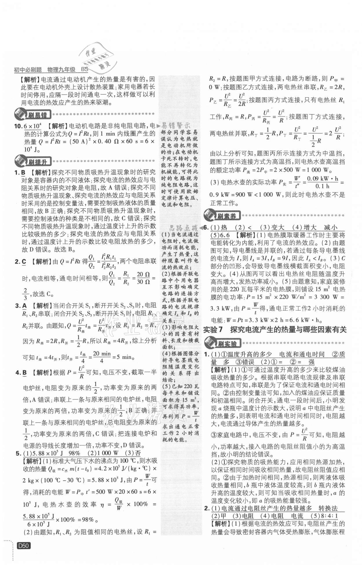注:目前有些书本章节名称可能整理的还不是很完善,但都是按照顺序排列的,请同学们按照顺序仔细查找。练习册 2021年初中必刷题九年级物理上册北师大版 答案主要是用来给同学们做完题方便对答案用的,请勿直接抄袭。