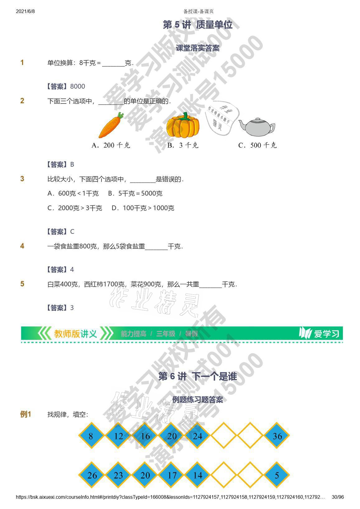 注:目前有些书本章节名称可能整理的还不是很完善,但都是按照顺序排列的,请同学们按照顺序仔细查找。练习册 2021年爱学习数学三年级能力提高体系苏教版 答案主要是用来给同学们做完题方便对答案用的,请勿直接抄袭。