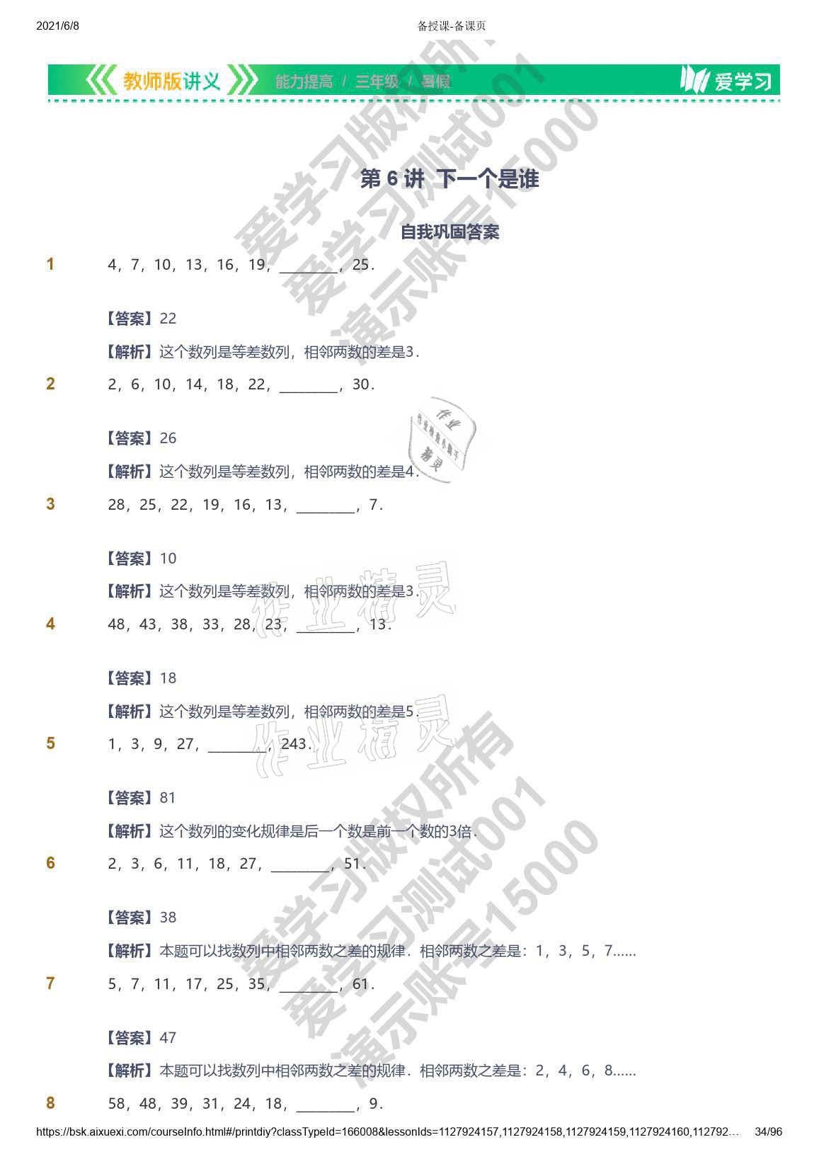 注:目前有些书本章节名称可能整理的还不是很完善,但都是按照顺序排列的,请同学们按照顺序仔细查找。练习册 2021年爱学习数学三年级能力提高体系苏教版 答案主要是用来给同学们做完题方便对答案用的,请勿直接抄袭。