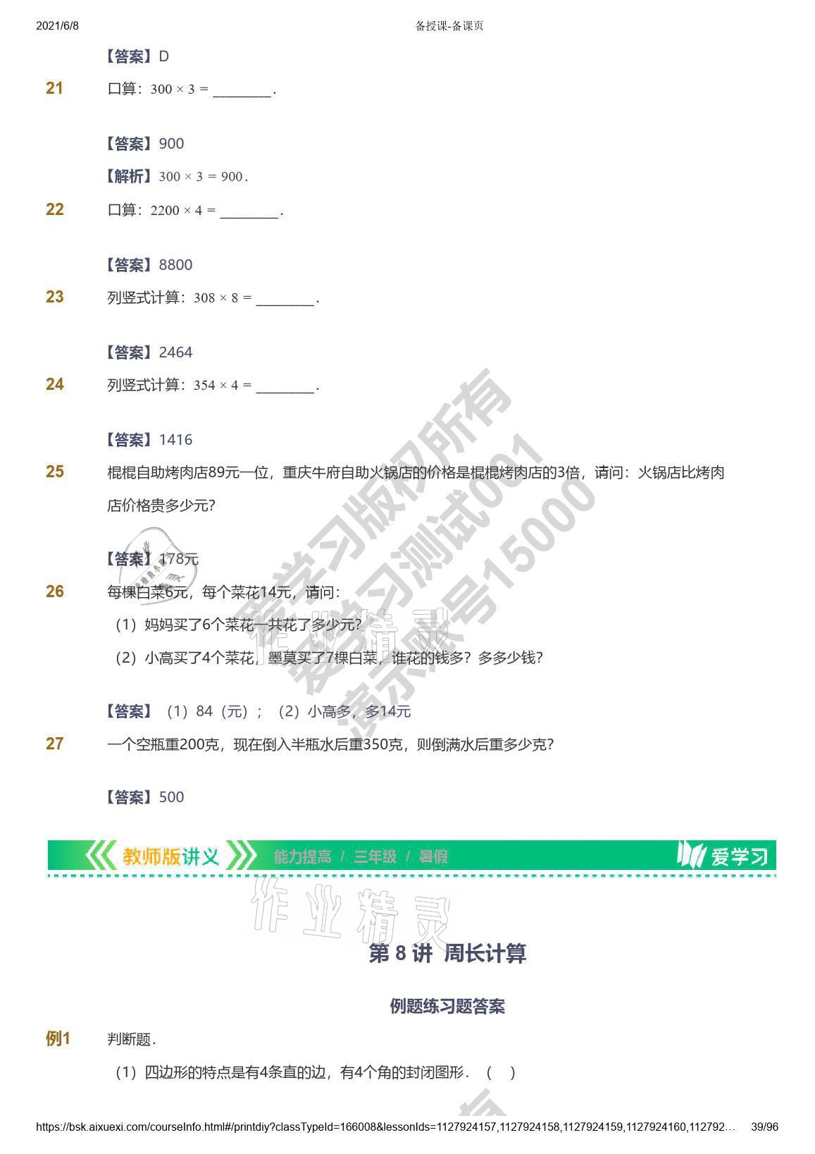 注:目前有些书本章节名称可能整理的还不是很完善,但都是按照顺序排列的,请同学们按照顺序仔细查找。练习册 2021年爱学习数学三年级能力提高体系苏教版 答案主要是用来给同学们做完题方便对答案用的,请勿直接抄袭。