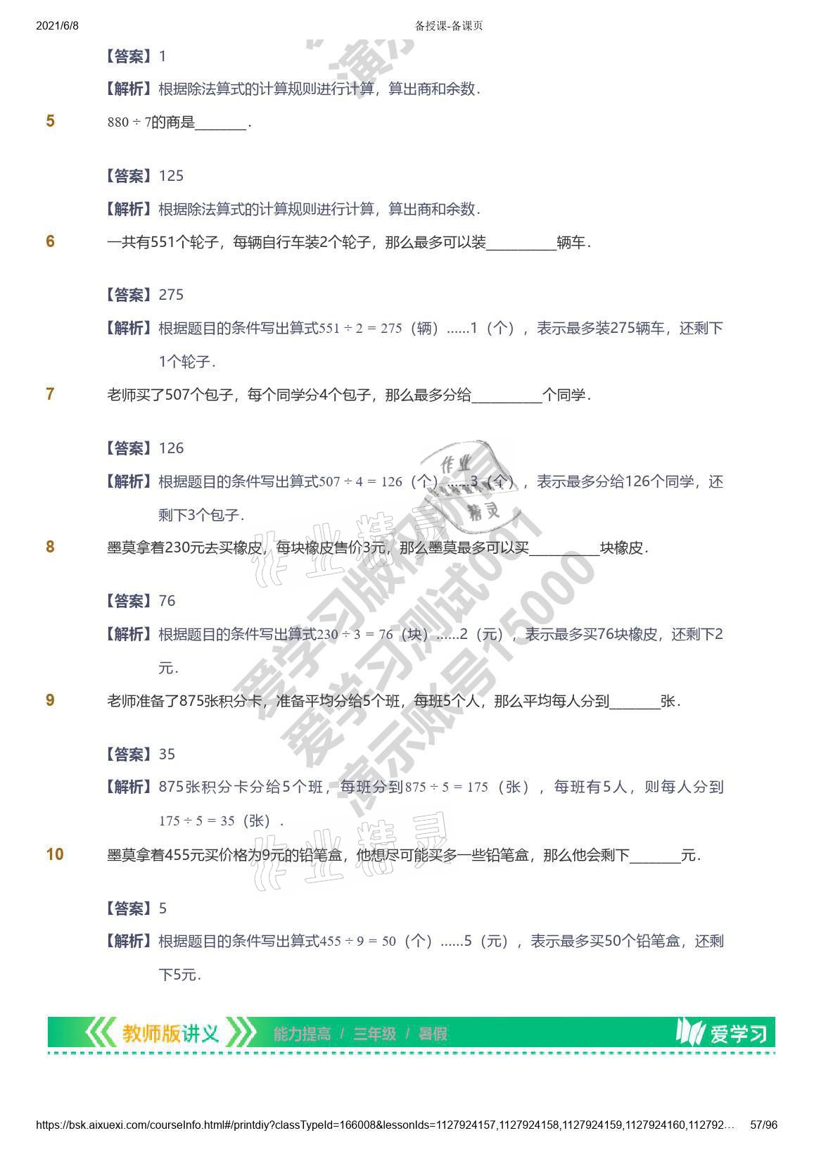 注:目前有些书本章节名称可能整理的还不是很完善,但都是按照顺序排列的,请同学们按照顺序仔细查找。练习册 2021年爱学习数学三年级能力提高体系苏教版 答案主要是用来给同学们做完题方便对答案用的,请勿直接抄袭。