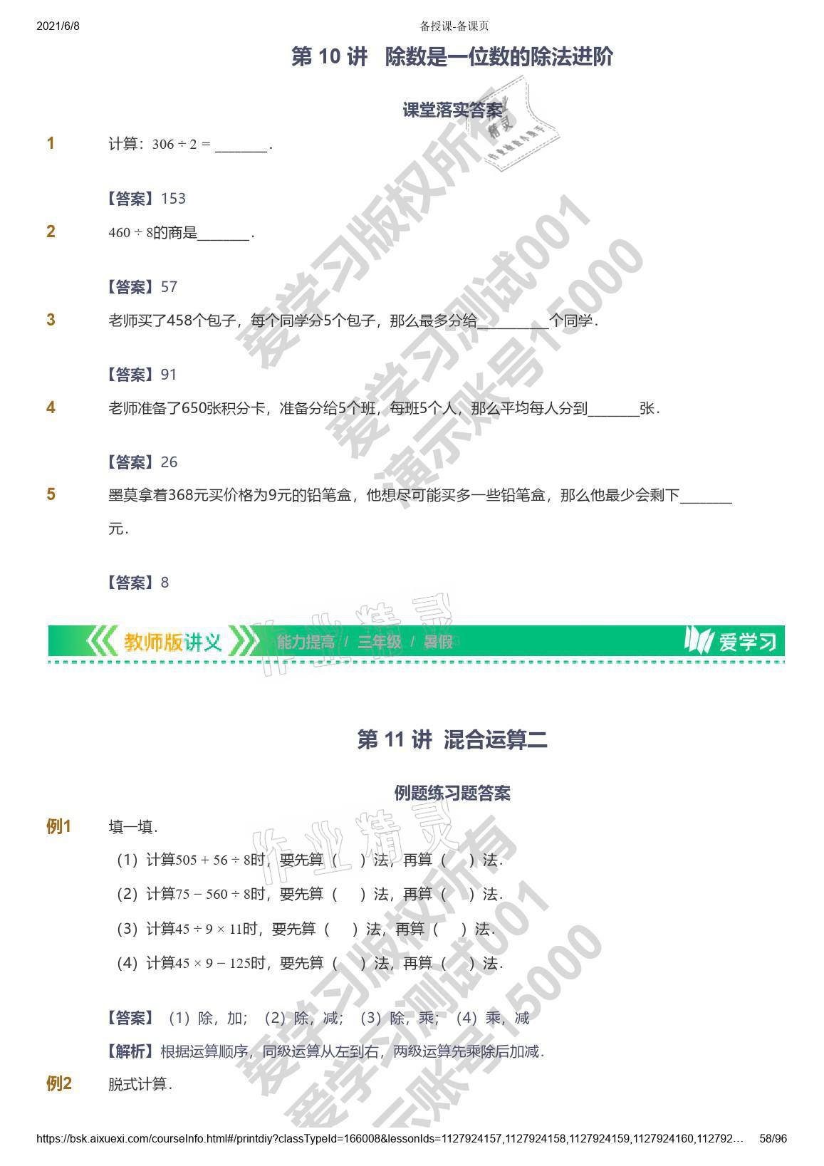 注:目前有些书本章节名称可能整理的还不是很完善,但都是按照顺序排列的,请同学们按照顺序仔细查找。练习册 2021年爱学习数学三年级能力提高体系苏教版 答案主要是用来给同学们做完题方便对答案用的,请勿直接抄袭。
