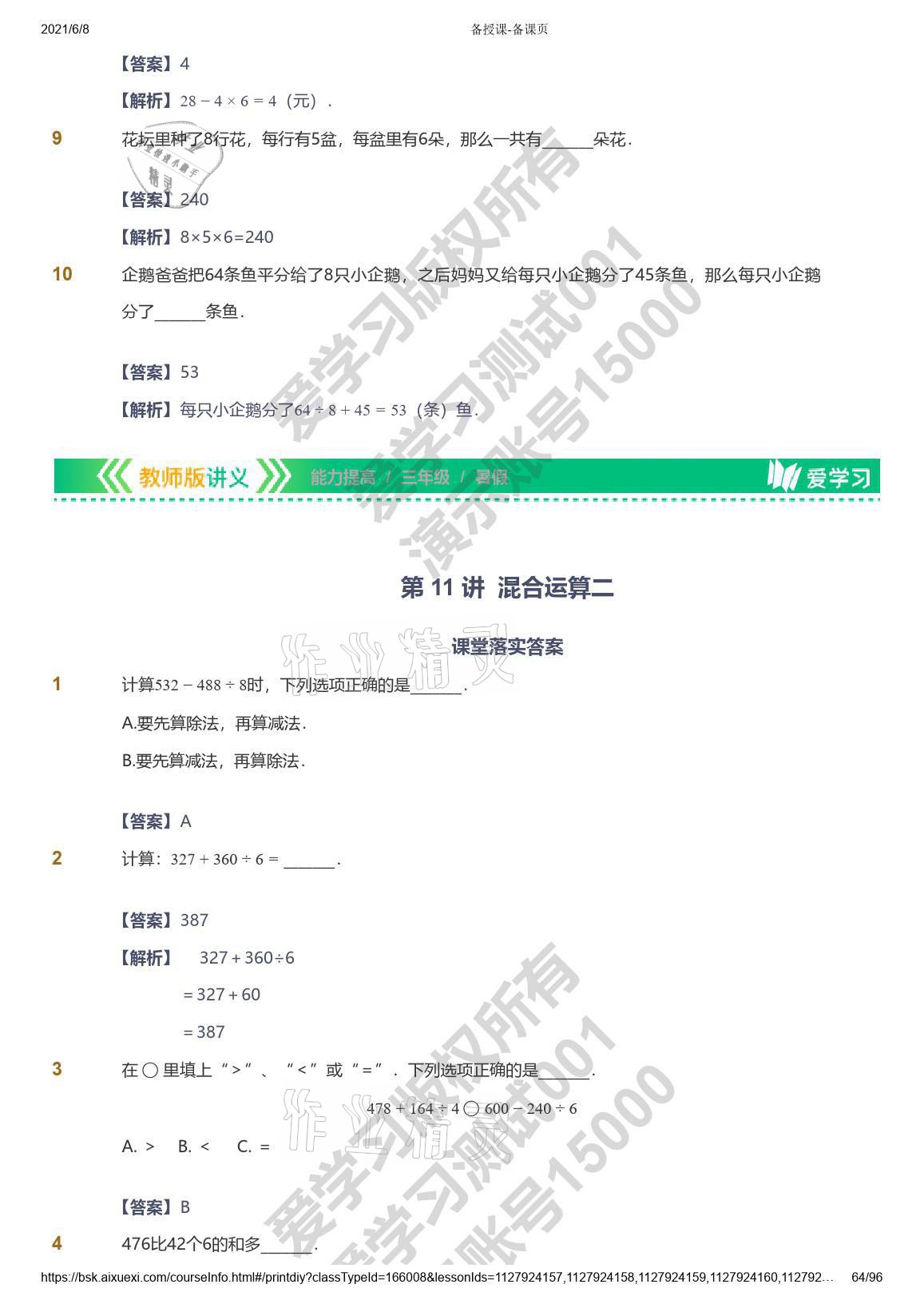 注:目前有些书本章节名称可能整理的还不是很完善,但都是按照顺序排列的,请同学们按照顺序仔细查找。练习册 2021年爱学习数学三年级能力提高体系苏教版 答案主要是用来给同学们做完题方便对答案用的,请勿直接抄袭。