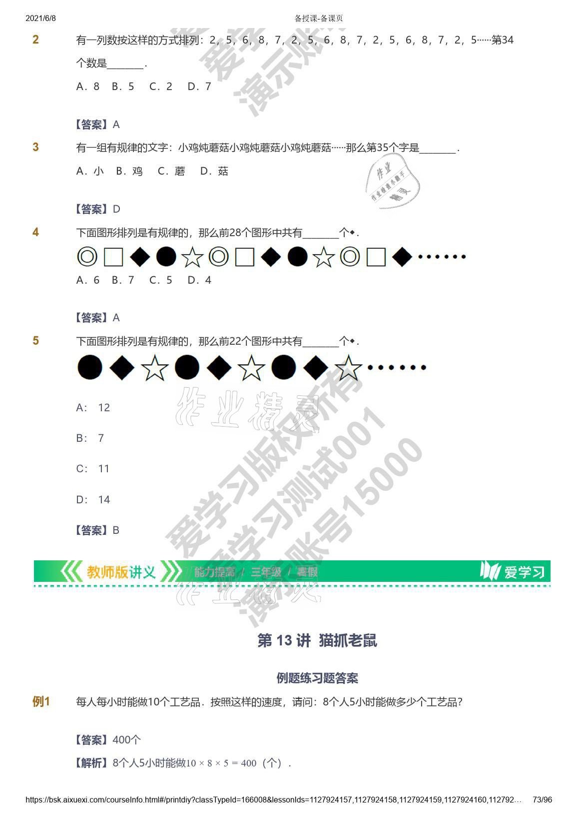 注:目前有些书本章节名称可能整理的还不是很完善,但都是按照顺序排列的,请同学们按照顺序仔细查找。练习册 2021年爱学习数学三年级能力提高体系苏教版 答案主要是用来给同学们做完题方便对答案用的,请勿直接抄袭。